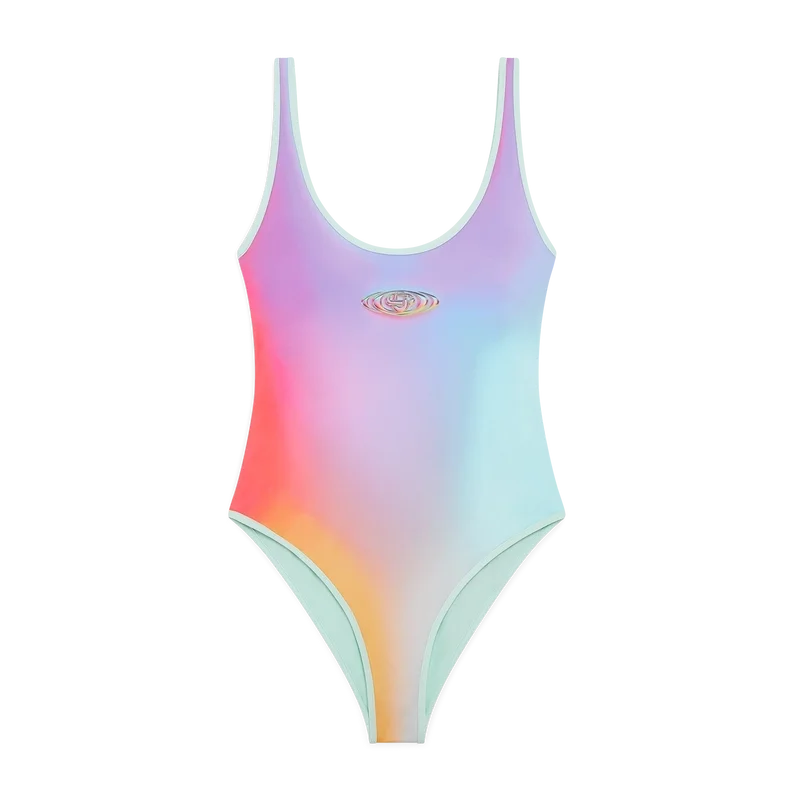Der Glass Gradient Badeanzug ist ein Einteiler mit dem einzigartigen Artwork der Saison, das in Zusammenarbeit mit Martin Naumann entstanden ist, der für seine Arbeiten bekannt ist, in denen er Farbverläufe und Struktureffekte mit Halbtönen und glasartigen Effekten verbindet. Abgerundet wird das Design durch das Warped-Logo des Hauses, hoch geschnittene Beine, einen Cut-Out am Rücken und einen U-Ausschnitt.