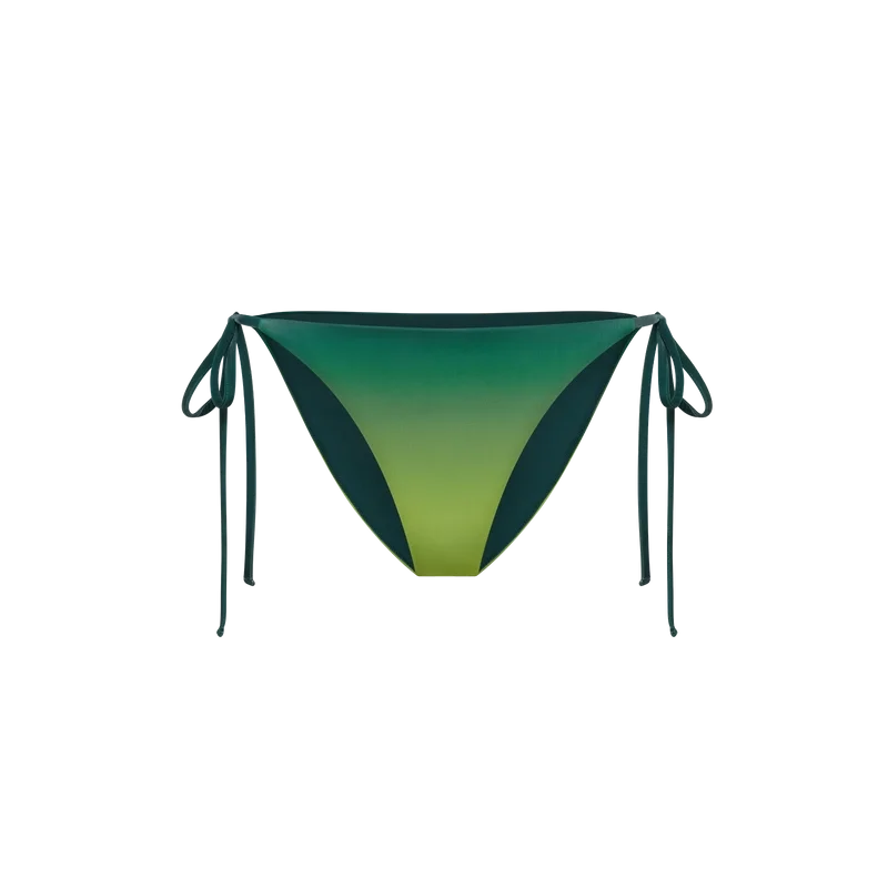 Die Gradient-Bikinihose ist ein bedrucktes Modell aus technischem Badestoff. Abgerundet durch kontrastierende weiße Bindebänder – dieses Modell ist dazu gedacht, zusammen mit dem passenden Bikini-Oberteil getragen zu werden.