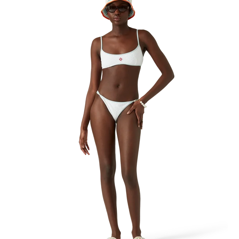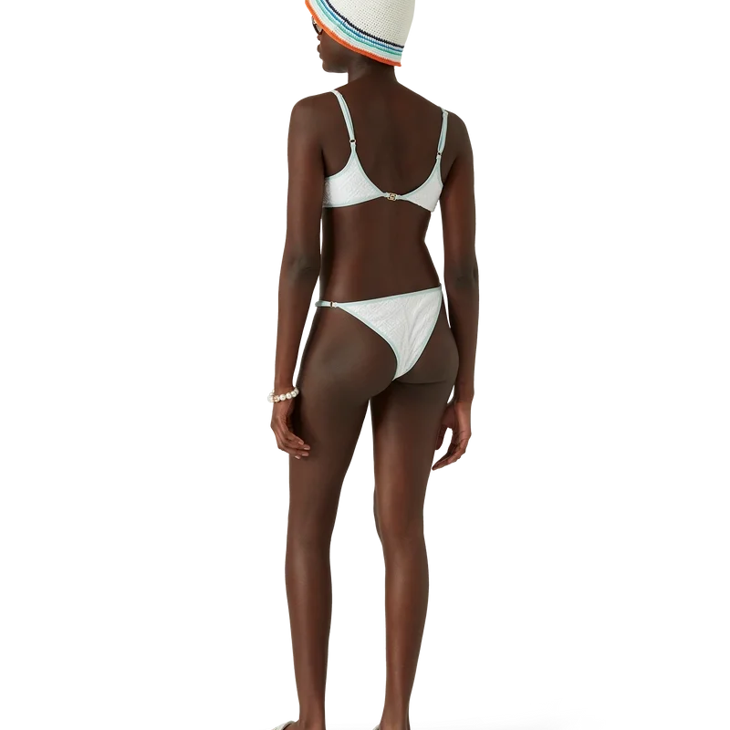Das Jacquard-Monogramm-Bikinihöschen ist ein bedrucktes Modell aus atmungsaktivem Polyester-Mischgewebe mit dem charakteristischen Diamond Monogram des Hauses. Abgerundet durch hellblaue Paspeln – dieses Teil ist dazu gedacht, mit dem passenden Bikini-Oberteil getragen zu werden.