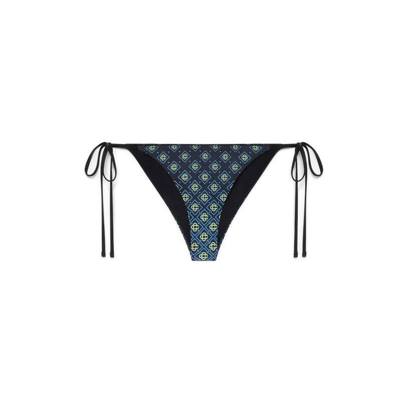 Das Bikini-Höschen „Degrade Black Monogram“ besticht durch ein raffiniertes Design mit dem schwarzen Monogramm-Muster des Hauses und Bindebändern. Abgerundet durch Bindebänder an den Hüften – dieses Modell ist dazu gedacht, mit dem passenden Bikini-Oberteil getragen zu werden.