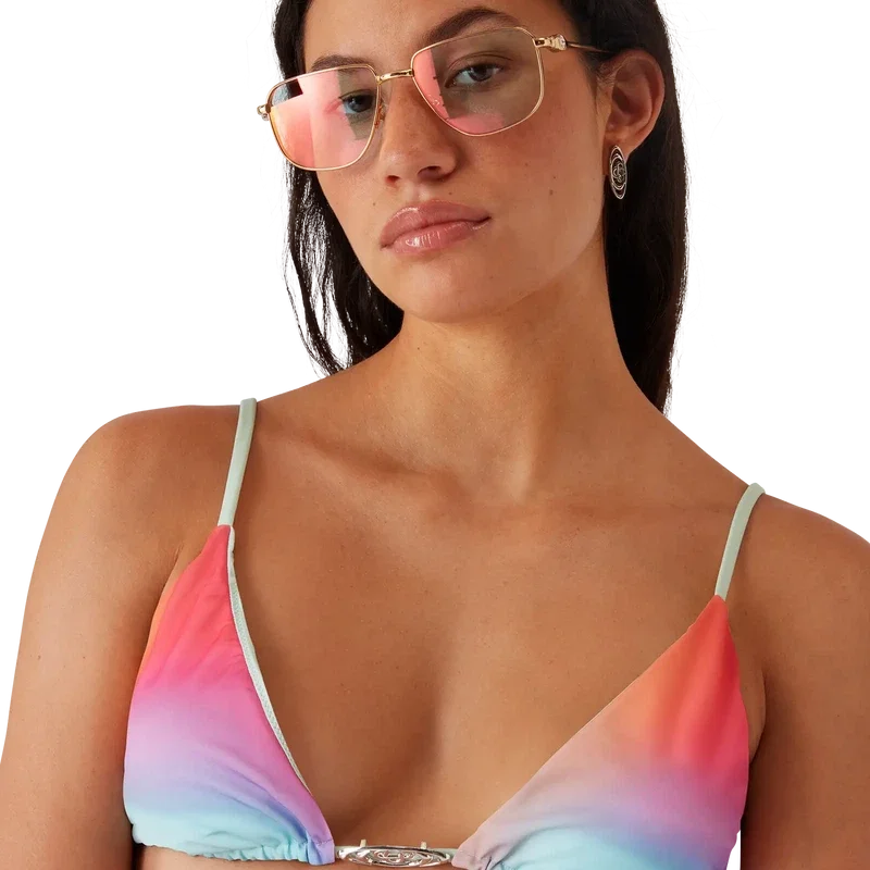 Das Glass Gradient Bikini-Oberteil ist ein Triangel-Modell mit dem einzigartigen Artwork der Saison, das in Zusammenarbeit mit Martin Naumann entstanden ist, der für seine Arbeiten bekannt ist, in denen er Farbverläufe und Struktureffekte mit Halbtönen und glasartigen Effekten verbindet. Abgerundet durch das Warped-Logo des Hauses, herausnehmbare Cup-Einlagen sowie Bindebänder am Nacken und am Rücken. Entworfen, um mit dem passenden Bikini-Höschen getragen zu werden.