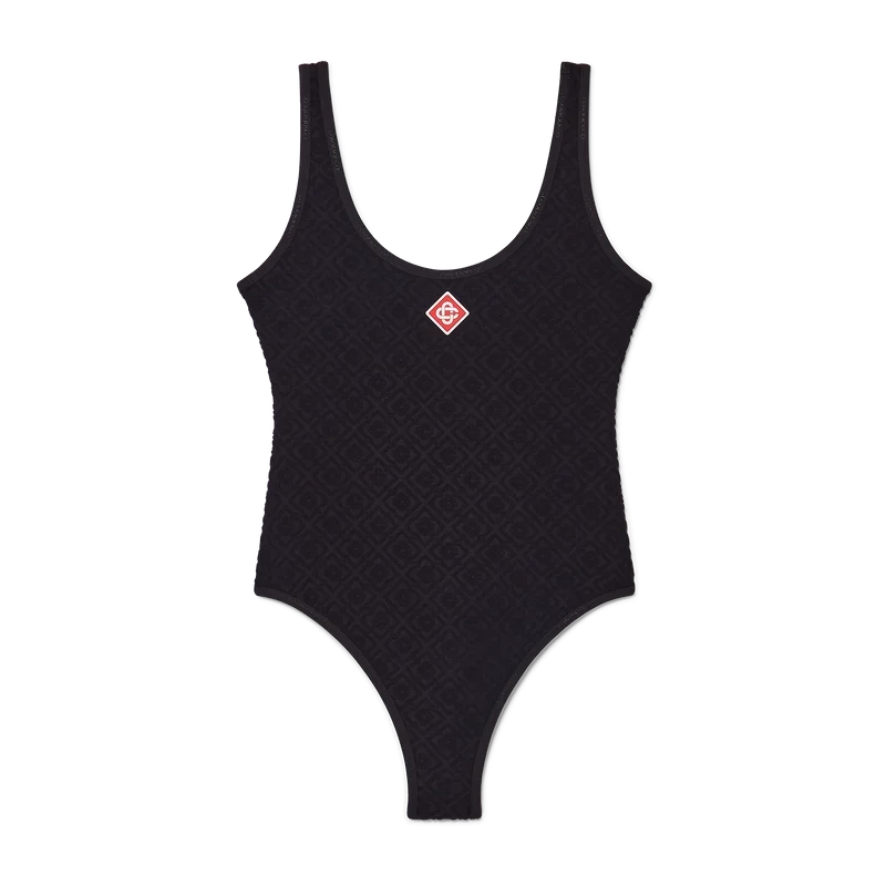 Der Monogram-Badeanzug ist ein eleganter Einteiler aus technischem Badestoff mit dem charakteristischen Monogram-Muster des Hauses. Das Design wird durch Applikationen, hoch geschnittene Beine, einen U-Ausschnitt und einen tief ausgeschnittenen Rücken abgerundet. Dieses Modell ist auf der Brust mit dem charakteristischen Diamant-Logo des Hauses versehen.