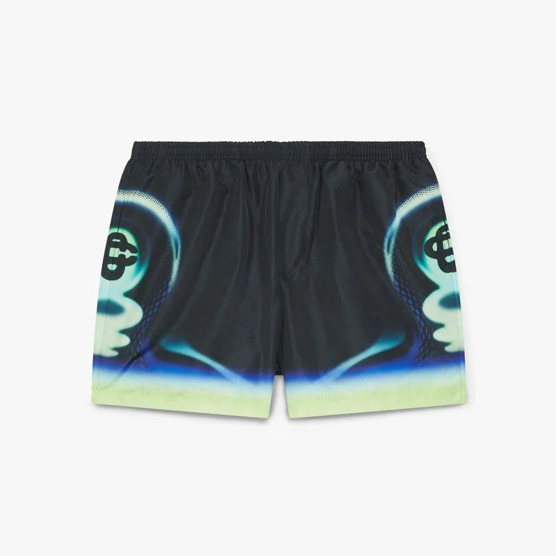 Die schwarzen Sporchid-Shorts mit Print sind ein raffiniertes Design aus technischem Badestoff, verziert mit dem saisonalen Sporchid-Motiv. Mit elastischem Bund, innenliegendem Kordelzug, Seitentaschen in den Nähten, Futter und kontrastierendem Saumdetail.