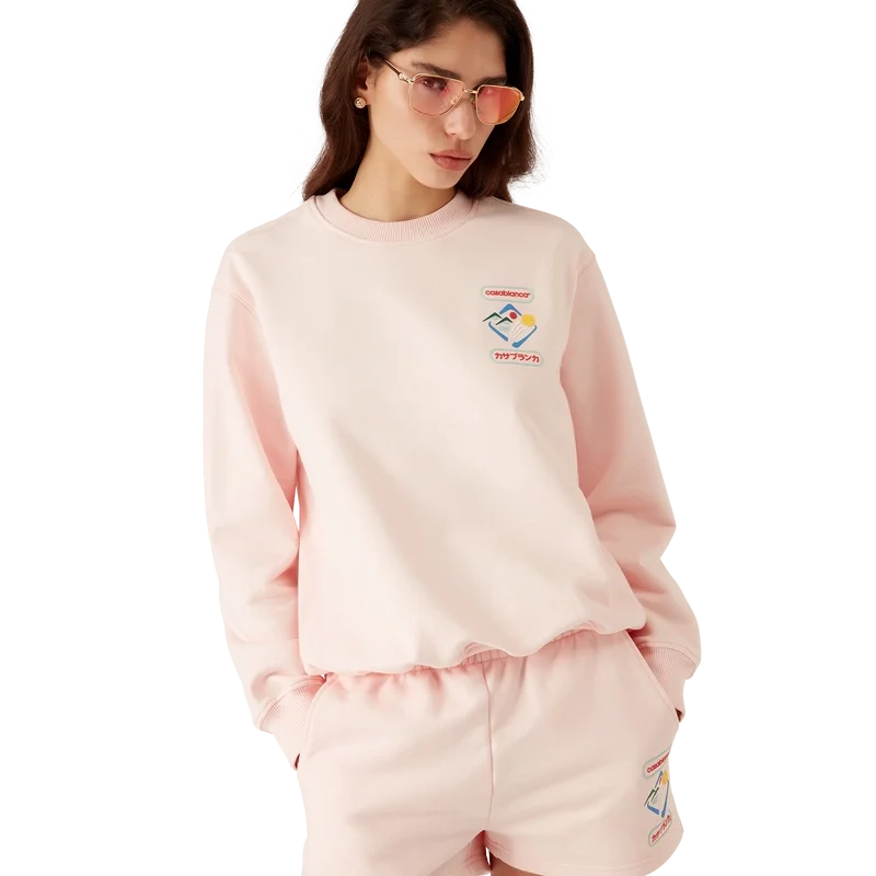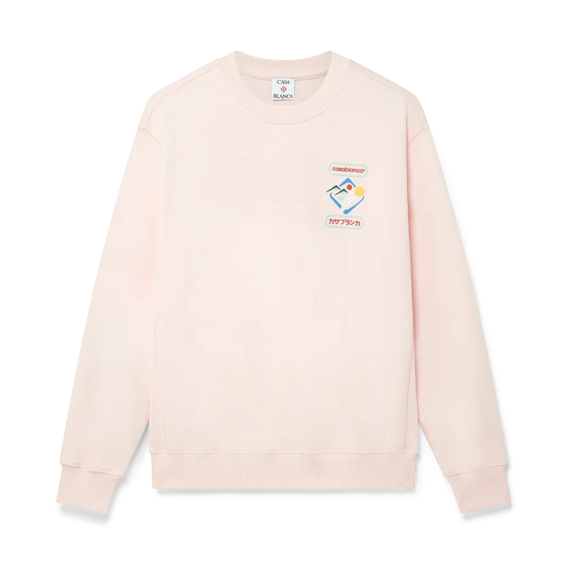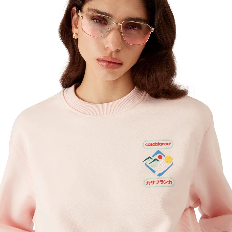 Das Casablanca Montagne Sportif Sweatshirt ist ein langärmeliges Modell aus Bio-Baumwollstoff mit dem saisonalen Artwork des Hauses. Abgerundet durch einen klassischen Rundhalsausschnitt, gerippte Seiteneinsätze sowie gerippte Bündchen und Saum.