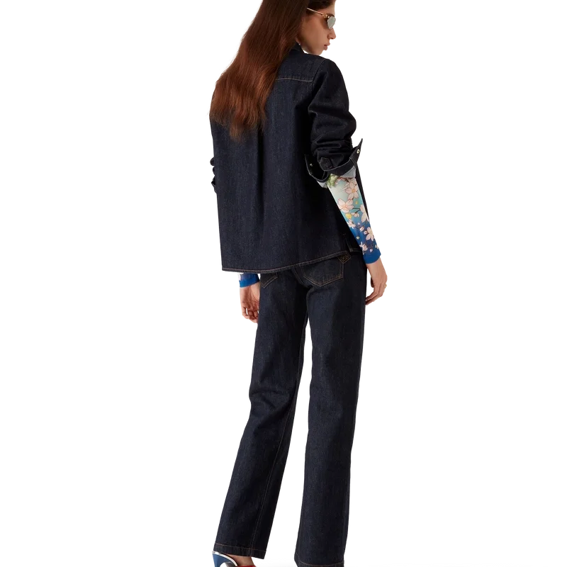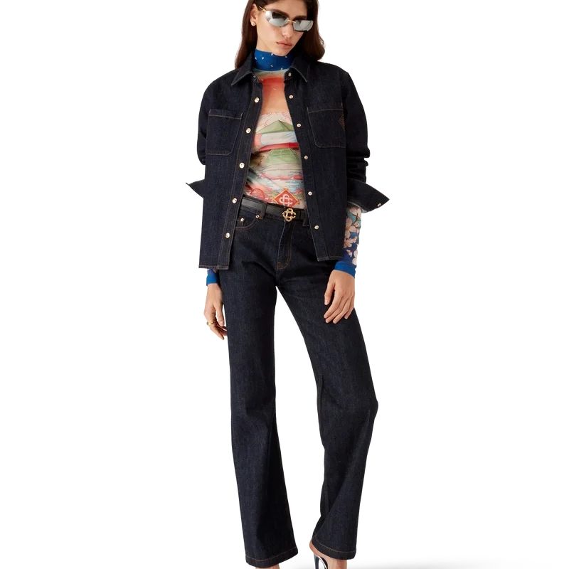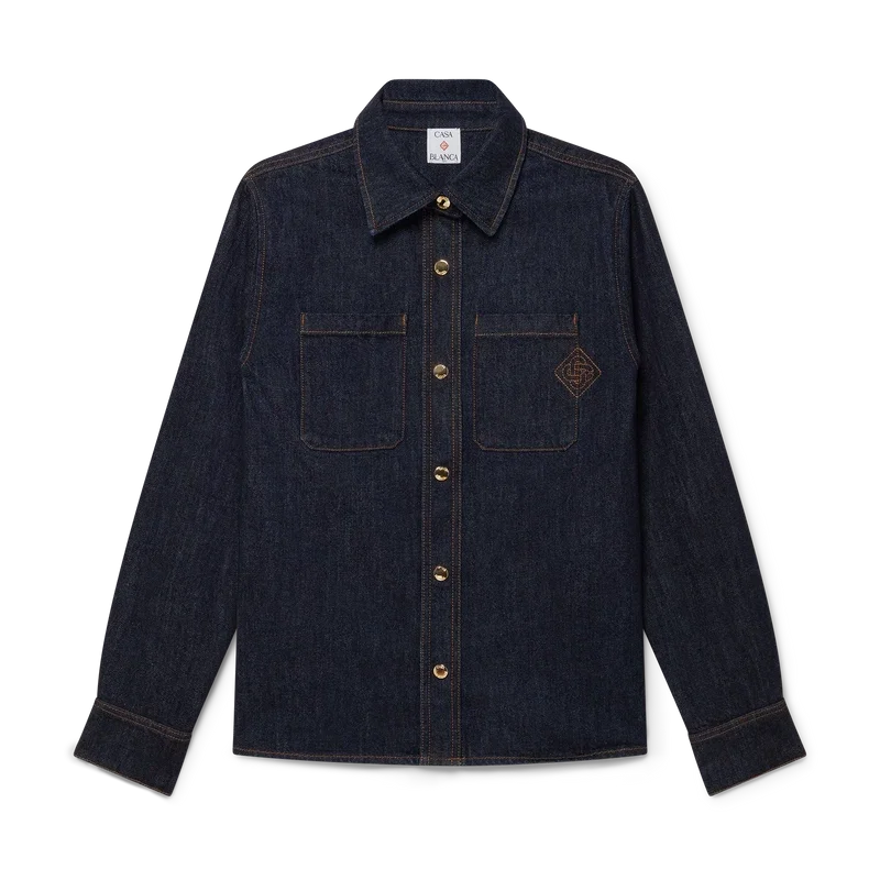 Das Raw-Denim-Hemd ist ein langärmeliges Modell aus Baumwoll-Denim. Es verfügt über Brusttaschen, einen spitzen Kragen, einen Knopfverschluss, vergoldete Markenbeschläge, eine Kellerfalte am Rücken und ein gesticktes CC-Logo. Es ist dazu gedacht, mit den dazu passenden Denim-Jeans getragen zu werden.