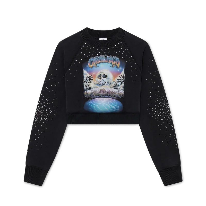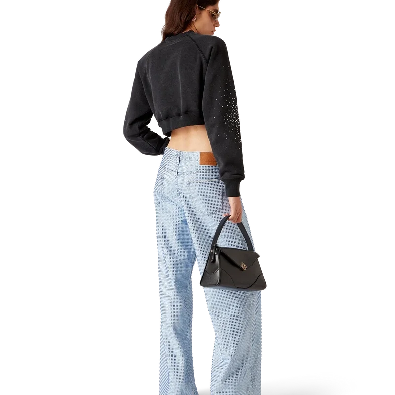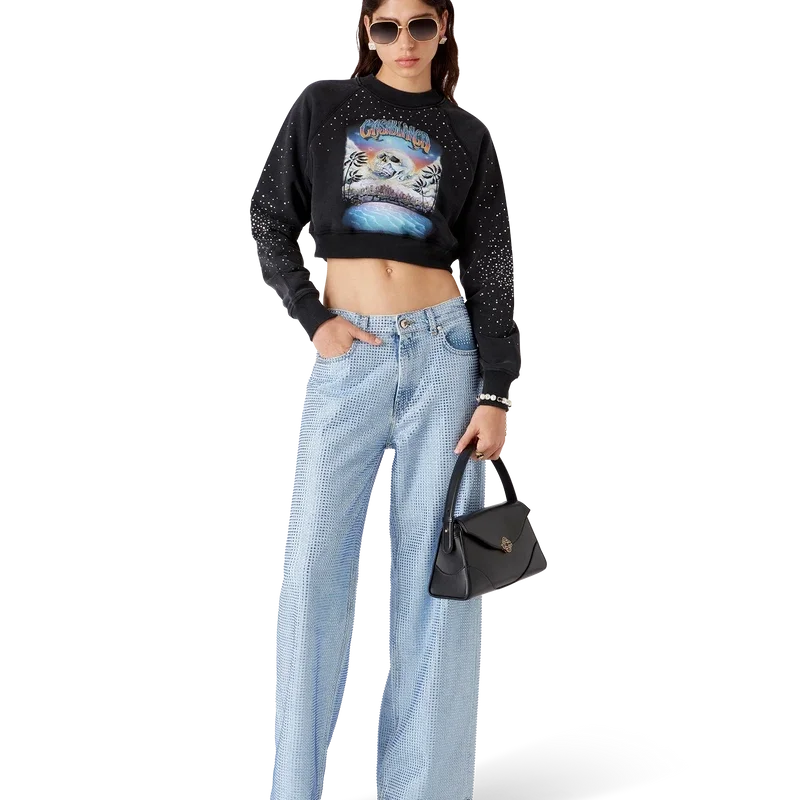 Die La Pramonition Denim-Shorts mit Kristallverzierung sind knielang und haben eine lockere Silhouette. Sie bestehen aus Denim-Stoff und sind vollständig mit Hotfix-Glasperlen verziert. Mit Futter, Taschen vorne und hinten, Reißverschluss und Gürtelschlaufen.<!–