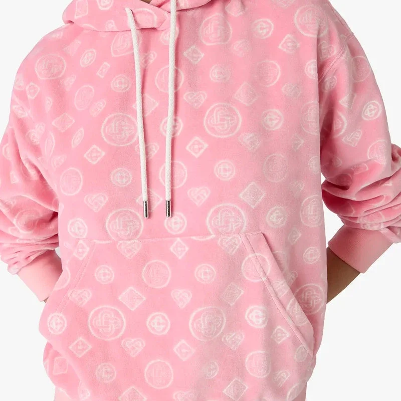 Rosa Velours-Sweatshirt mit Kapuze und Monogramm