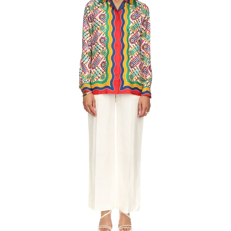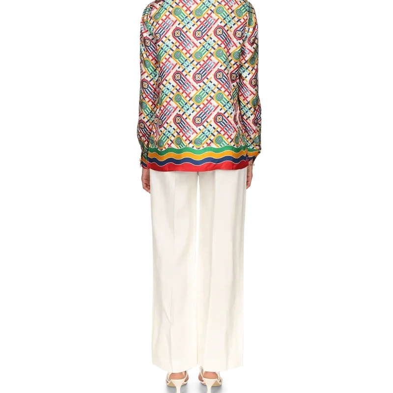 Das langärmelige Seidenhemd „Tennis Monogram“ für Damen zeigt das charakteristische Design des Hauses, neu interpretiert für die exklusive Nordstrom-Kollektion, die sich um moderne, vom Tennis inspirierte Athleisure-Mode dreht. Mit offenem Kragen, rotem Besatz, Knopfleiste vorne und charakteristischen goldumrandeten Perlmuttknöpfen. Entworfen für eine lockere Passform.
