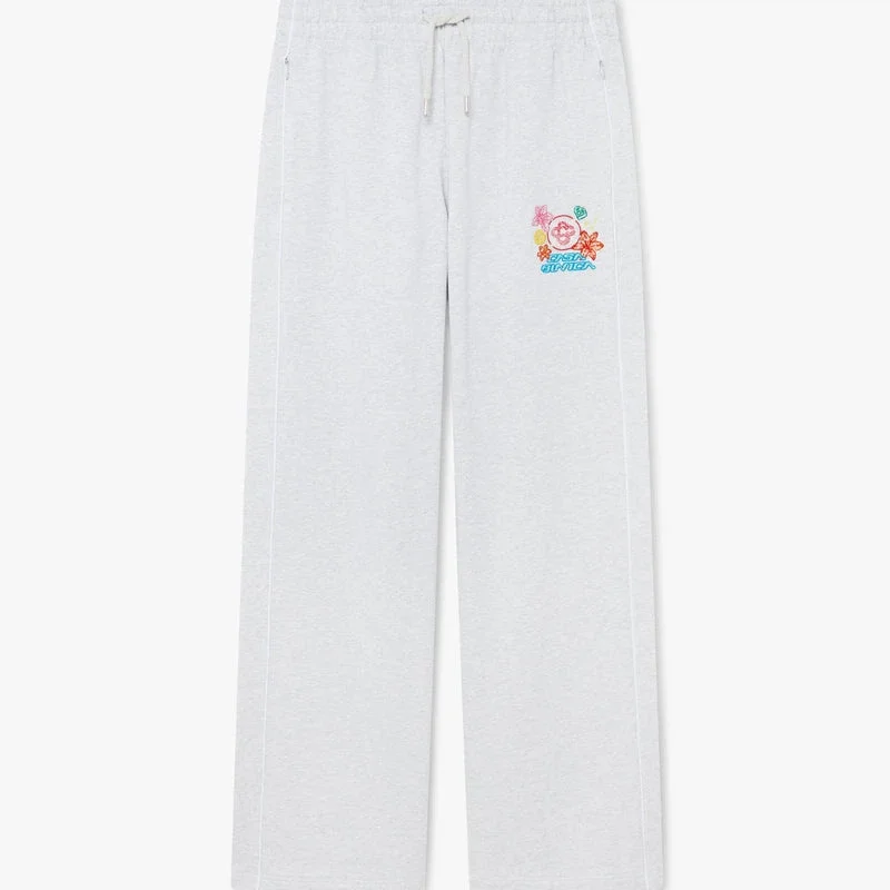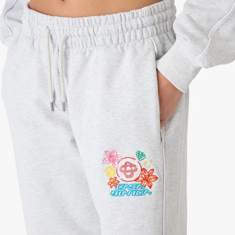 Die graue, bestickte, verkürzte Jogginghose besticht durch ein raffiniertes Design mit dem grafischen Collagen-Motiv der Saison, das die Ikonografie und Designelemente der neuen Saison mit Interpretationen des Logos, des Smileys und der Orchideenblüte darstellt. Abgerundet durch einen elastischen Bund, einen Kordelzug, Paspeldetails an den Seiten, Eingrifftaschen und eine aufgesetzte Gesäßtasche. Entworfen, um mit dem passenden Kapuzen-Sweatshirt getragen zu werden.