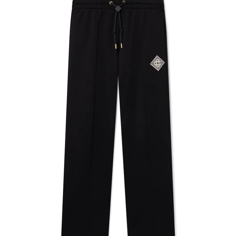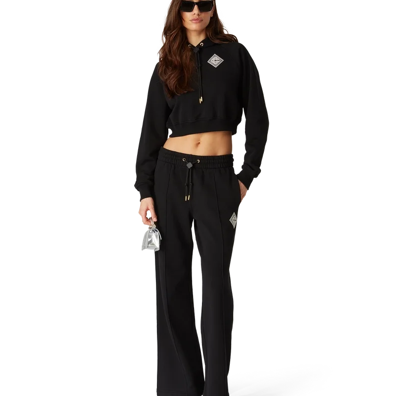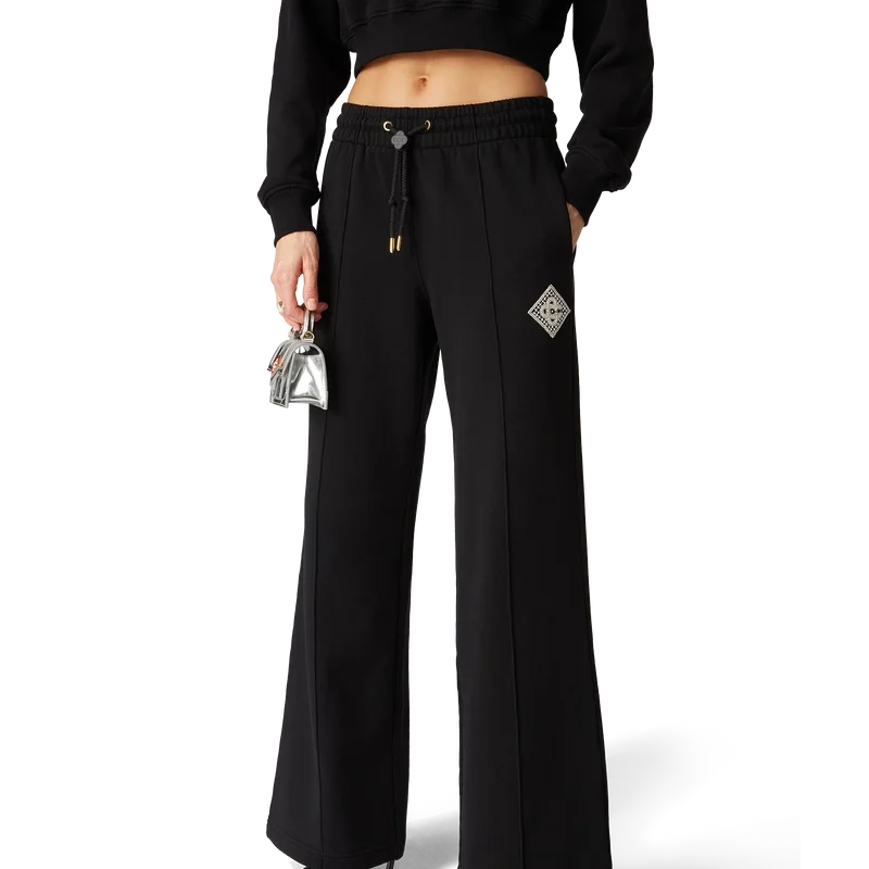 Die Pearl Diamond Sweatpants sind eine geradlinige, hochwertige Sportbekleidung aus Bio-Baumwolle. Mit elastischem Bund, vergoldeten Ösen, Kordelzug mit goldenen Enden, Seitentaschen in den Nähten, einer aufgesetzten Gesäßtasche und einem Aufnäher mit Perlen und Kristall-Diamanten.<!–