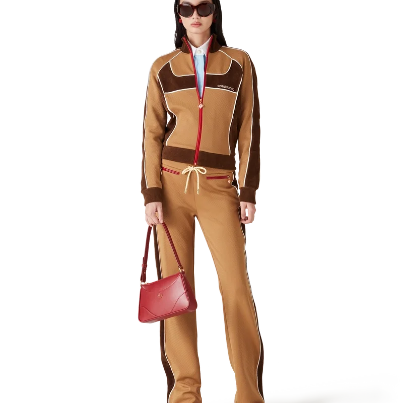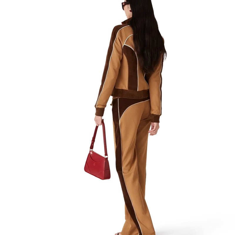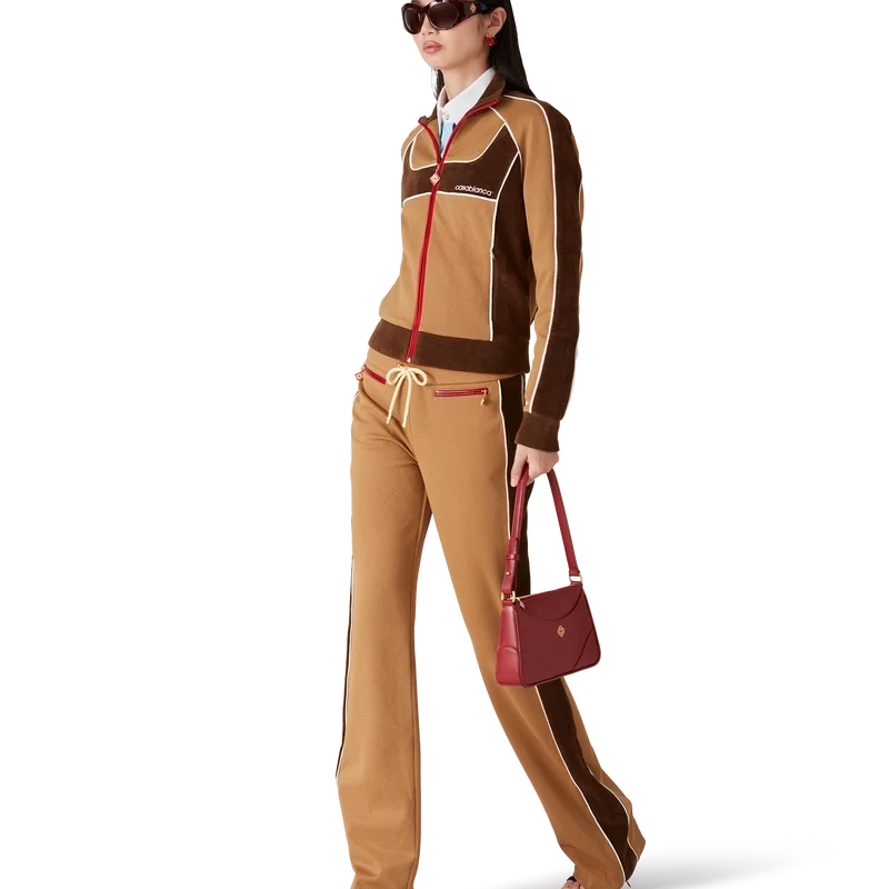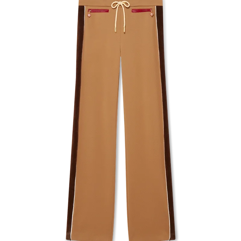 Die Trainingshose mit Chenille-Einsätzen ist ein von Sportbekleidung inspiriertes Design aus technischem Veloursstoff und verfügt über das charakteristische Rautenlogo des Hauses auf der Reißverschlusslasche. Abgerundet wird sie durch einen elastischen Bund, einen Kordelzug mit goldenen Enden, Seiteneinsätze mit weißen Paspeldetails, Vordertaschen und eine Gesäßtasche mit Paspel und Reißverschluss.