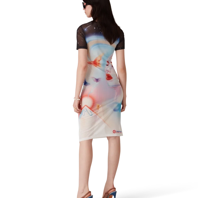 Galactic Connection Mesh-Kleid mit kurzen Ärmeln