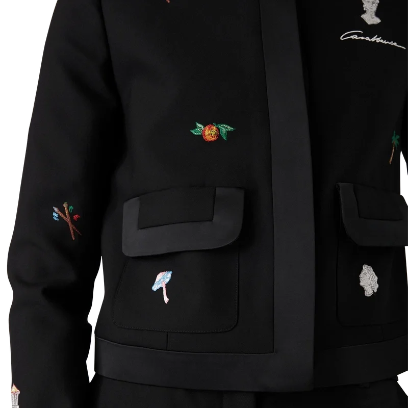 Maßgeschneiderte Jacke aus Wolle mit gesticktem Motiv