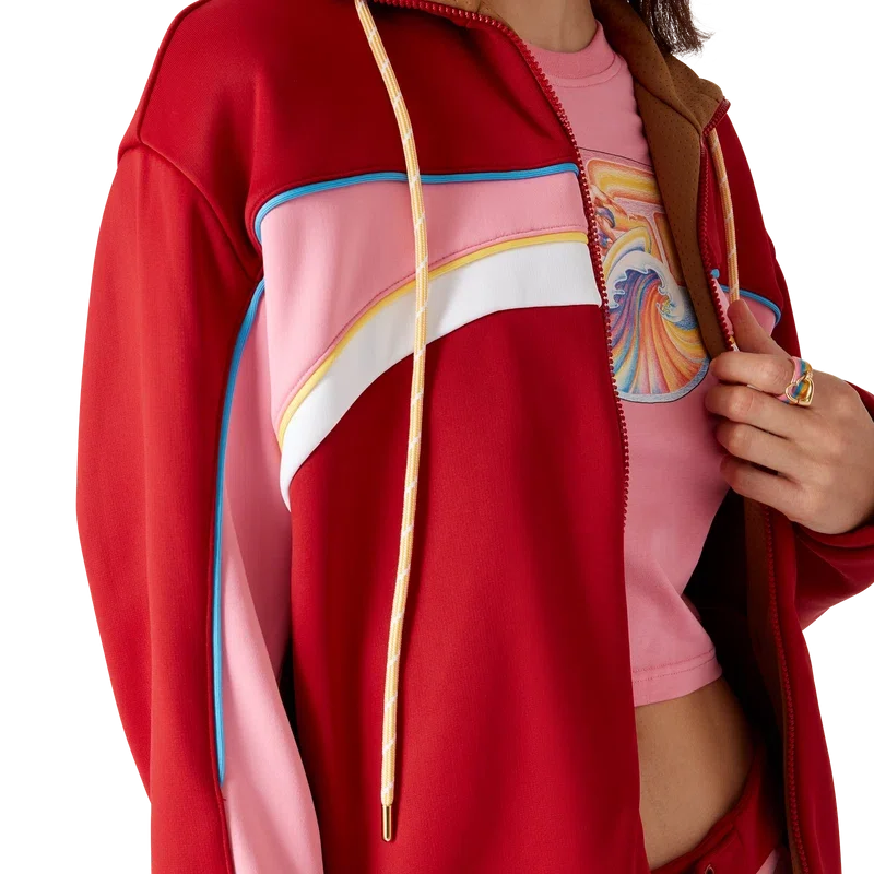 Die Tricot Oversized Trainingsjacke ist ein langärmeliges Sportbekleidungsmodell aus Tricot-Stoff. Mit Stehkragen, Kordelzug, Reißverschluss sowie elastischen Bündchen und Saum.