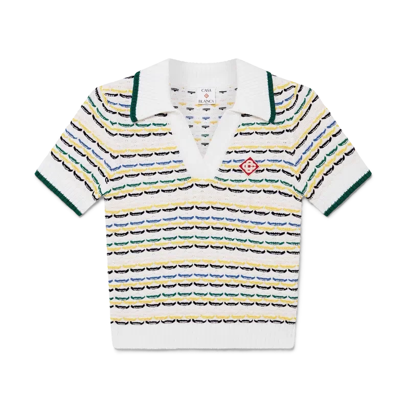 Das kurze Polohemd aus Baumwolle mit Tuck-Stich ist ein kurzärmeliges Strickmodell aus Baumwollstoff. Es verfügt über einen V-Ausschnitt sowie einen gerippten Kragen, Ärmelbündchen und Saum mit kontrastierenden Kanten.
