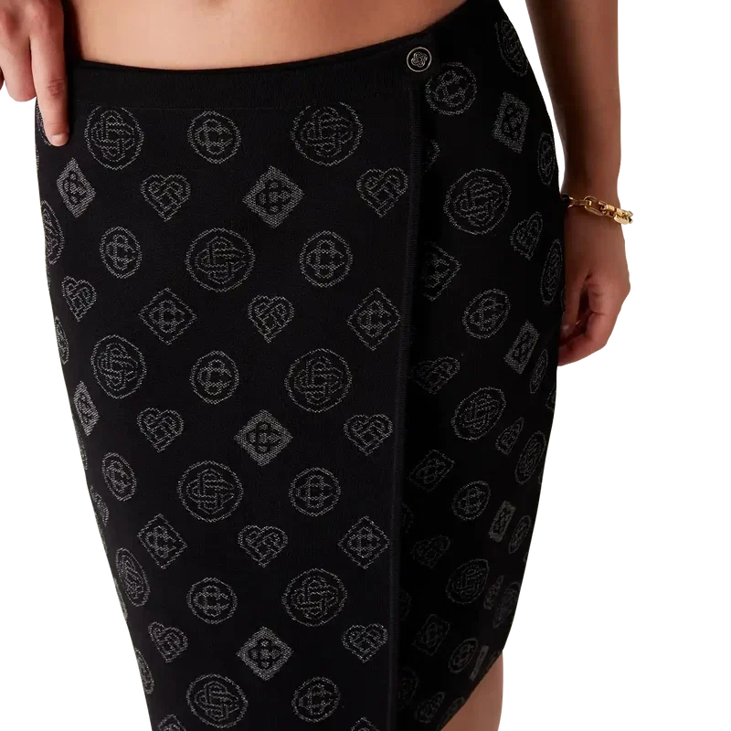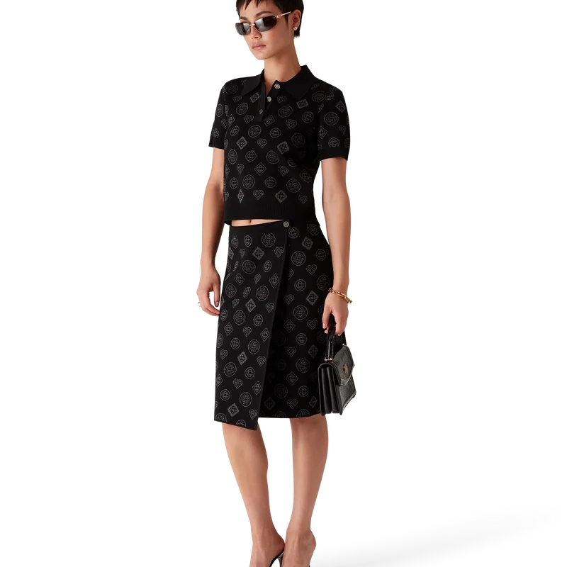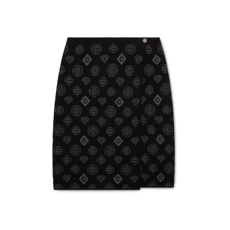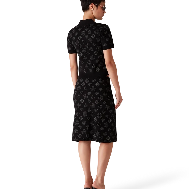 Der City Jacquard-Rock ist ein klassisches, mittellanges Design mit dem wiederkehrenden Honeydew-Logo des Hauses. Dieses Muster unterscheidet sich von unseren anderen Monogrammen, da es einzigartige Formen zu einem einheitlichen Muster kombiniert. Es handelt sich eher um ein ikonisches Design. Abgerundet durch einen kontrastierenden Rippbündchen, einen elastischen Bund und einen Schlitz vorne.