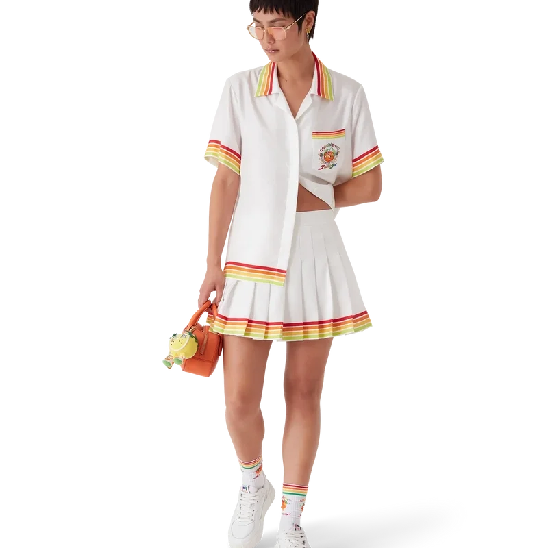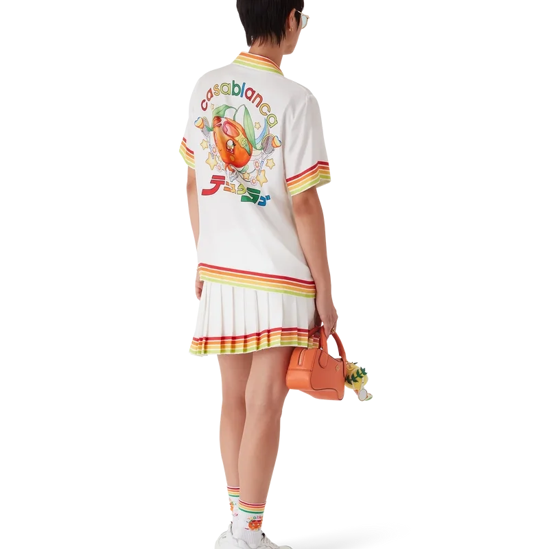 Orangefarbener Plisseerock aus Seidentwill mit Maskottchen