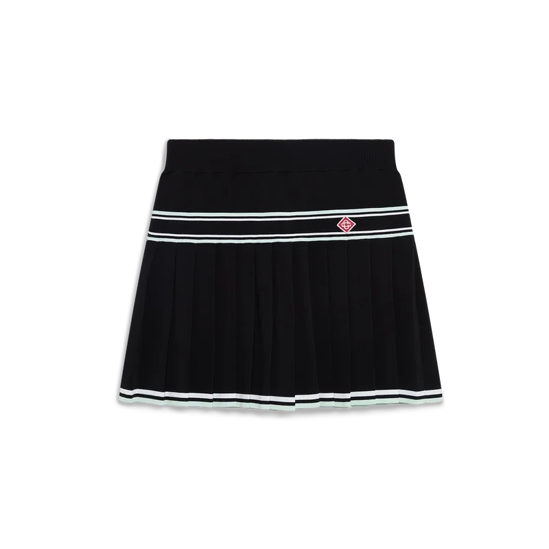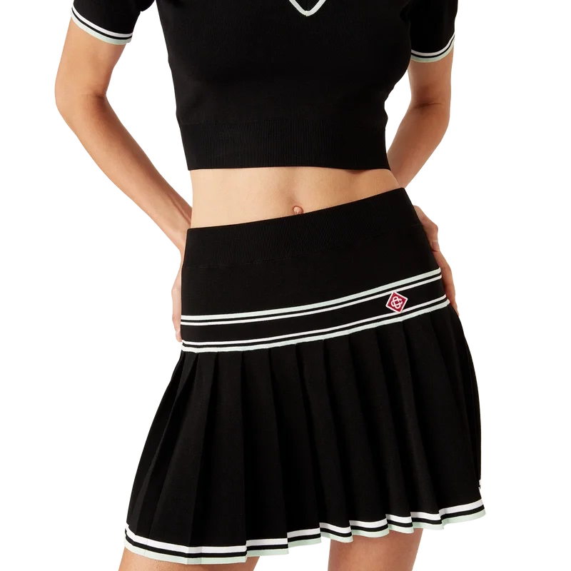 Der plissierte Mini-Rock aus Viskose ist ein kurzer Rock aus Viskose-Stoff. Mit einem Einsatz mit Streifendetail und einem plissierten Einsatz mit horizontal gestreiftem Saum.