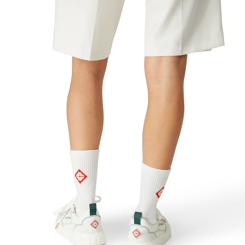 Das Design des Court Sneakers spiegelt die ikonischen Silhouetten der 90er Jahre wider. Die Farben der Gummisohle sind eine Kombination aus den raffinierten Codes des Tennis und der klassischen Architektur und schaffen eine einheitliche Farbpalette für den gesamten Schuh, wobei der Fokus auf Primärfarben liegt, die durch Tennisweiß abgesetzt werden, um eine sportlich orientierte Farbgeschichte zu schaffen. Obermaterial aus weißem Leder im Ton-in-Ton-Look Casablanca-Diamant-Gummiaufnäher an der Ferse Casablanca-Sport-Logo aus Silikon an der Seite Gewebtes Court-Zungenlabel Von Tennisplätzen inspirierte Außensohle in von Tennis inspirierten Primärfarben Goldene Schnürsenkelenden Zölle und Abgaben Bitte beachten Sie, dass für Kunden außerhalb der EU bei der Lieferung Einfuhrzölle und Steuern anfallen können. Bitte erkundigen Sie sich vor dem Kauf bei der Zollbehörde Ihres Landes, um die für Sie geltenden Einfuhrzölle und Steuern zu ermitteln. Wenn Sie zwischen zwei Größen liegen, empfehlen wir Ihnen, die kleinere Größe zu wählen.