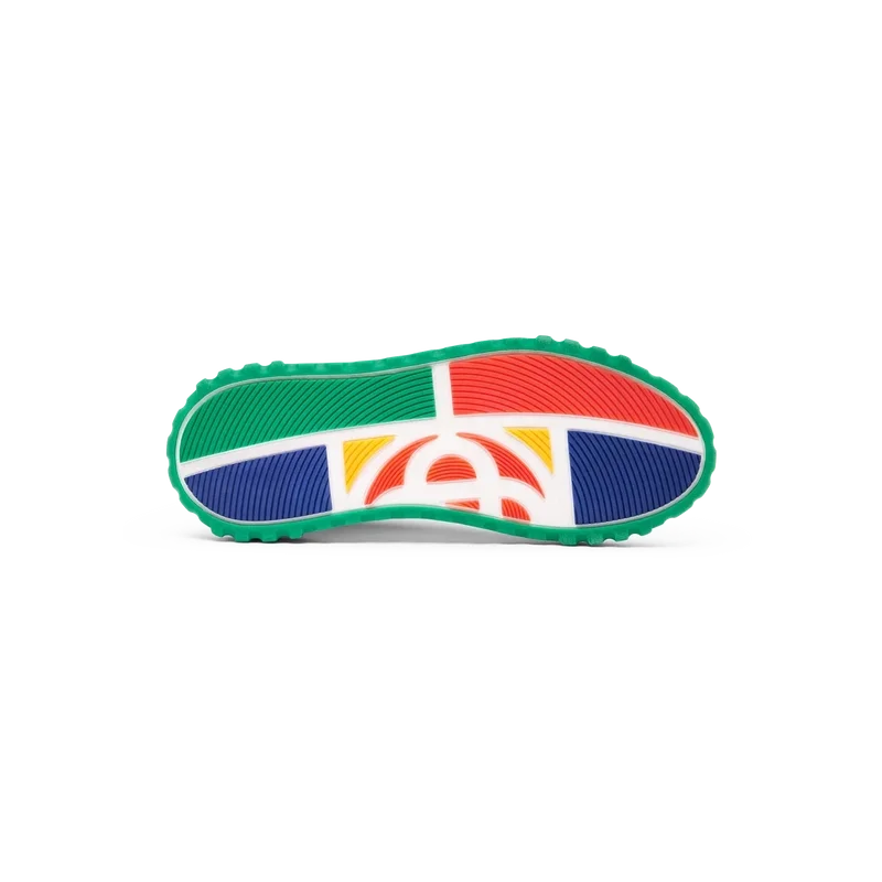 Das Design des Court Sneakers spiegelt die ikonischen Silhouetten der 90er Jahre wider. Die Farben, die sich über die gesamte Gummisohle ziehen, sind eine Kombination aus den raffinierten Codes des Tennis und der klassischen Architektur und schaffen eine einheitliche Farbpalette im gesamten Schuh, wobei der Fokus auf Primär- und Sekundärfarben liegt, die durch Tennisweiß abgesetzt werden, um eine sportorientierte Farbgeschichte zu schaffen.