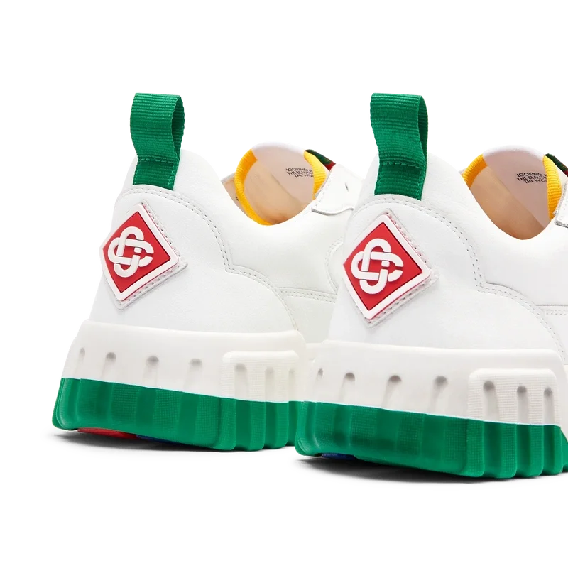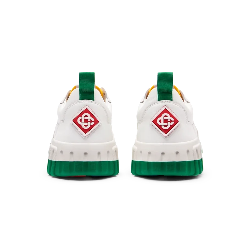 Das Design des Court Sneakers spiegelt die ikonischen Silhouetten der 90er Jahre wider. Die Farben der Gummisohle sind eine Kombination aus den raffinierten Codes des Tennissports und der klassischen Architektur und schaffen eine einheitliche Farbpalette für den gesamten Schuh, wobei der Fokus auf Primärfarben liegt, die durch Tennisweiß abgesetzt werden, um eine sportlich orientierte Farbgeschichte zu schaffen.