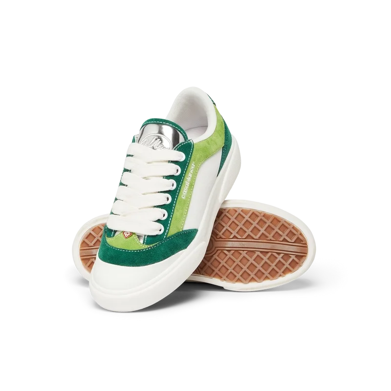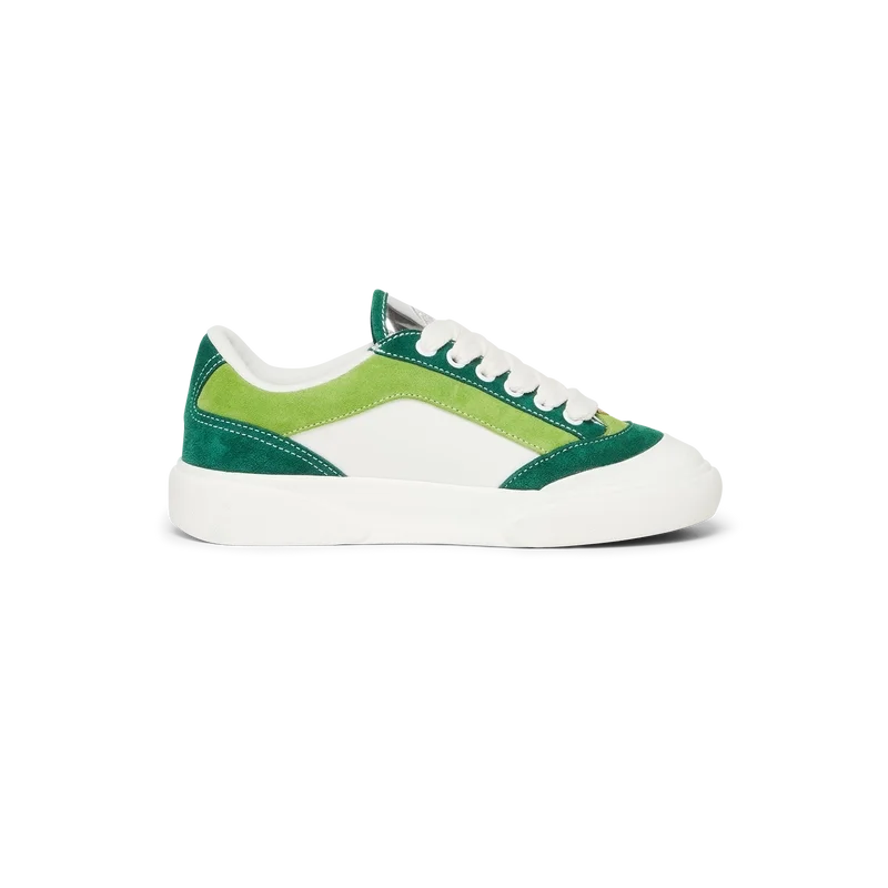Der grüne Del Mar Sneaker ist an die klassischen Skate-Schuhe der späten 70er bis frühen 80er Jahre angelehnt und hat seinen Namen von einem berühmten Skatepark aus den 1980er Jahren in Kalifornien. Der Del Mar Sneaker hat sich zu einem charakteristischen Modell im Kernsortiment des Hauses entwickelt und weist eine Vielzahl von Stilelementen auf, die von den frühen Skateschuhen übernommen wurden, darunter ein Obermaterial mit Canvas-Einsätzen, eine Zehenkappe aus Gummi, eine flache Sohle und klobige Schnürsenkel, kontrastierende Ösen und dezentes Branding.