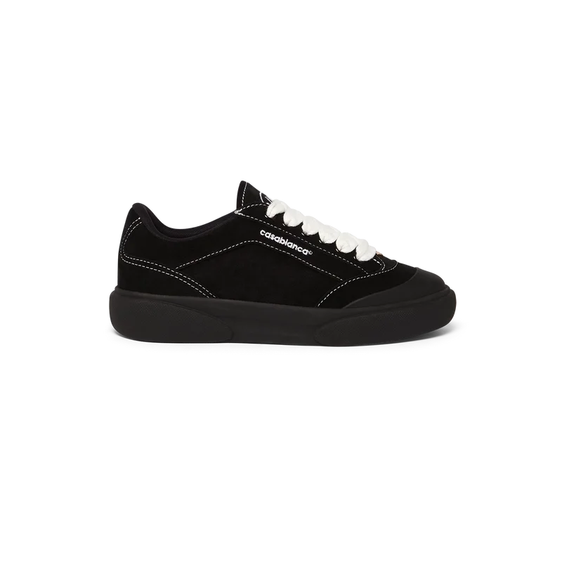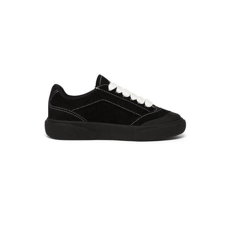Der schwarze Del Mar Sneaker ist an die klassischen Skateschuhe der späten 70er bis frühen 80er Jahre angelehnt und hat seinen Namen von einem berühmten Skatepark aus den 1980er Jahren in Kalifornien. Der Del Mar Sneaker hat sich zu einem charakteristischen Stil im Kernsortiment des Hauses entwickelt und weist eine Vielzahl von Merkmalen auf, die von den frühen Skateschuhen übernommen wurden, darunter ein Obermaterial mit Canvas-Einsätzen, eine Zehenkappe aus Gummi, eine flache Sohle und klobige Schnürsenkel, kontrastierende Ösen und dezentes Branding.