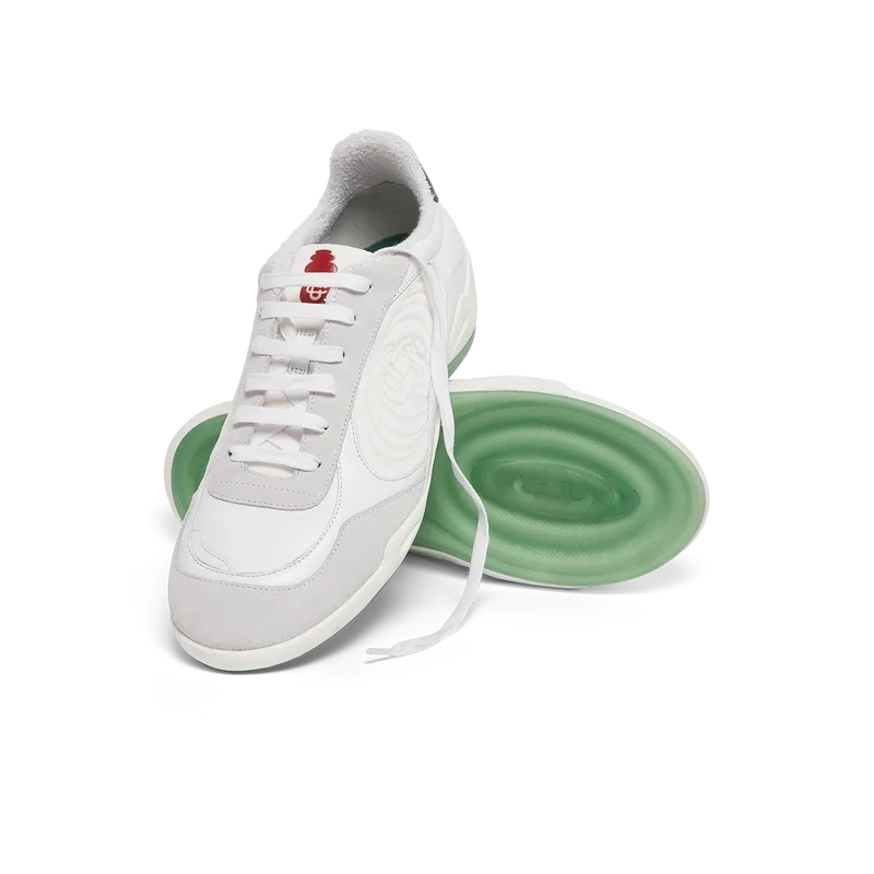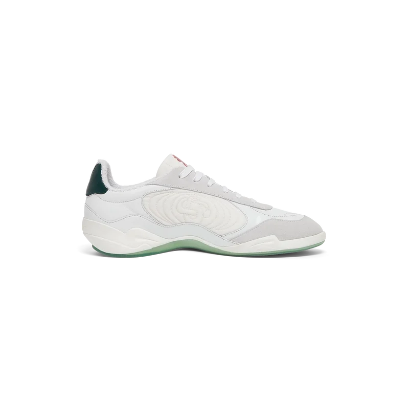 Der Squash-Hallen-Sneaker für Damen ist ein Performance-Modell aus hochwertigem Leder und Textil, das den raffinierten Ansatz des Hauses im Sportbereich verkörpert. Abgerundet wird er durch eine flache Sohle, kontrastierende Sohlendetails und das Warped-Logo des Hauses an der Seite.