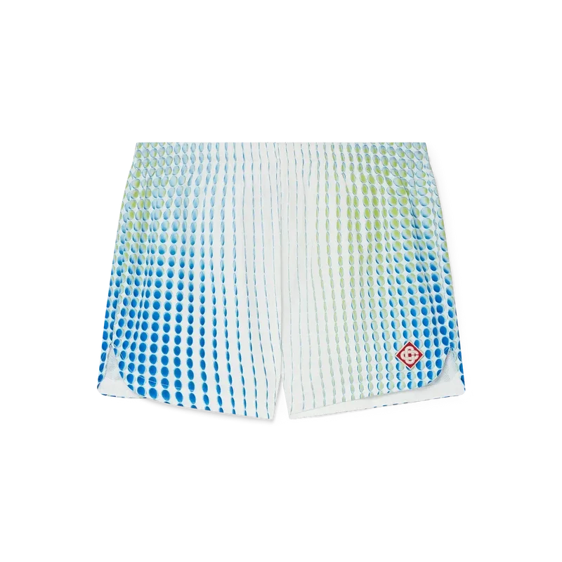Die bedruckten Shorts aus Poly-Taft sind ein klassisches Design mit dem charakteristischen Diamant-Logo-Aufnäher des Hauses und einzigartigen Grafiken, die in Zusammenarbeit mit Martin Naumann entstanden sind, der für seine Arbeiten mit Farbverläufen und Struktureffekten bekannt ist. Abgerundet durch einen elastischen Bund, einen Kordelzug, ein Futter, Seitentaschen und einen abgerundeten Saum.