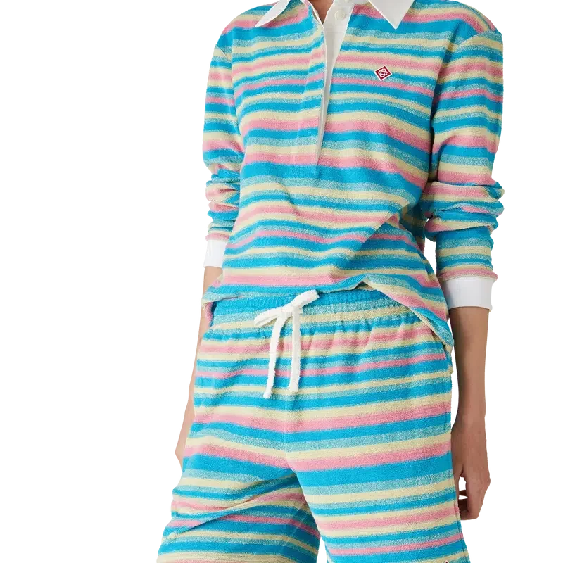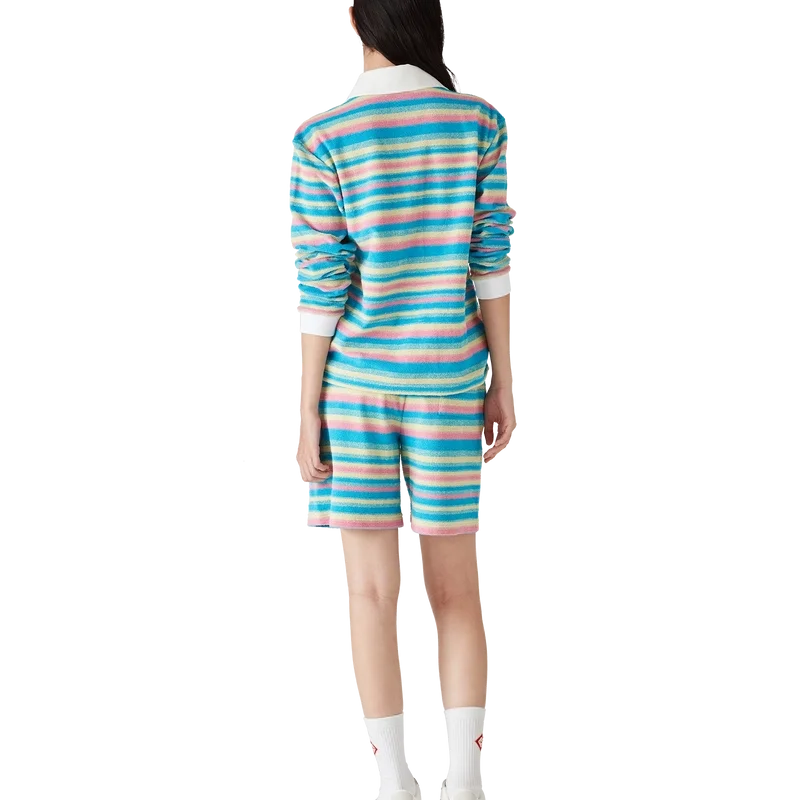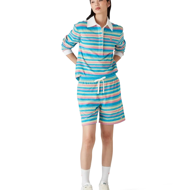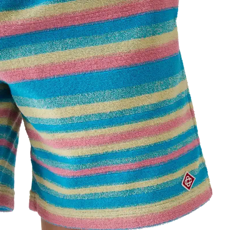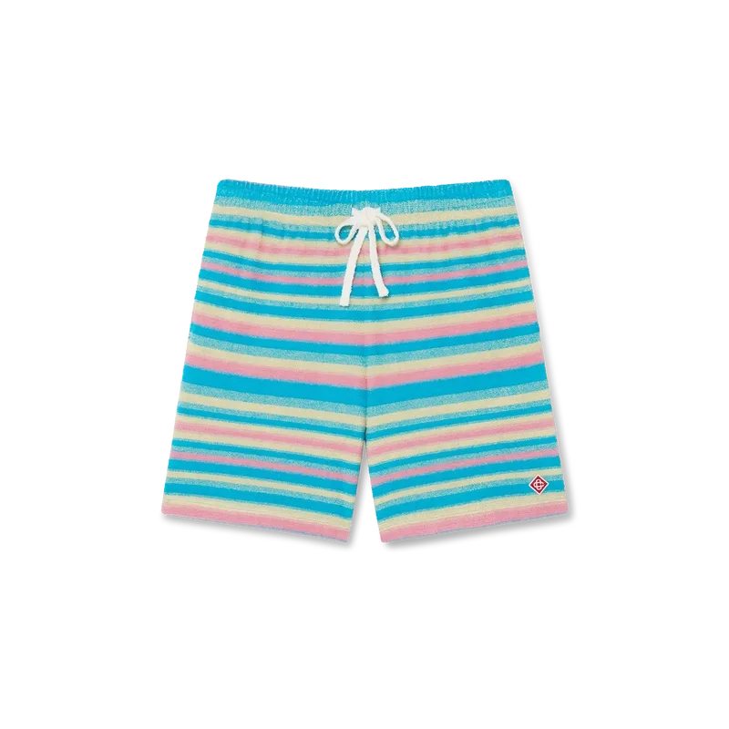 Die gestreiften Frottee-Shorts sind ein klassisches Modell aus Frottee und mit dem charakteristischen Rautenlogo des Hauses versehen. Mit elastischem Bund, Kordelzug, Seitentaschen in den Beinen und einer aufgesetzten Gesäßtasche.