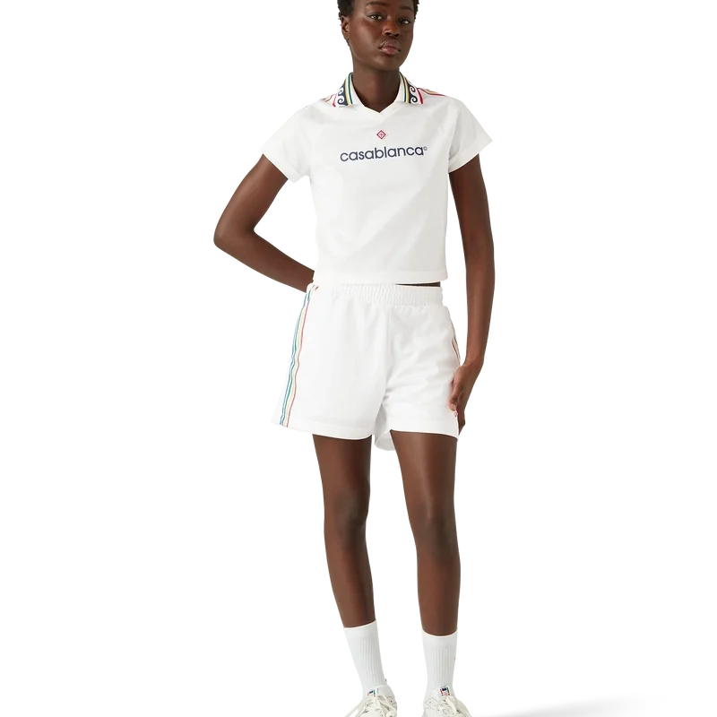 Die Jacquard-Monogramm-Fußballshorts sind ein Sportbekleidungsdesign mit dem charakteristischen Diamond Monogram des Hauses. Sie sind aus Jacquard-Monogramm-Stoff gefertigt und verfügen über einen elastischen Bund, einen Kordelzug, die charakteristische Diamond Monogram-Logo-Applikation des Hauses, Streifendetails an den Seiten und ein Casablanca-Logo auf der Brust.