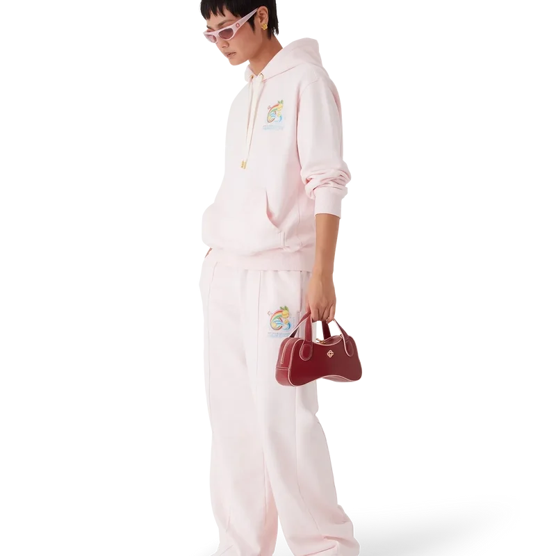 Die Manga Tennis Ball Sweathose mit offenem Saum ist ein Sportbekleidungsdesign aus Bio-Baumwollstoff mit saisonalen Motiven, die die Welt von Kawaii und Manga erkunden und mit der Ikonografie von Casablanca spielen, wobei Tennisbälle als Orangen verwendet werden, um einen lustigen Twist zu erzielen. Abgerundet durch einen elastischen Bund, vergoldete Ösen, einen Kordelzug mit goldenen Enden, Biesen an der Vorderseite, Eingrifftaschen und eine aufgesetzte Gesäßtasche.