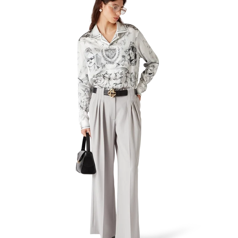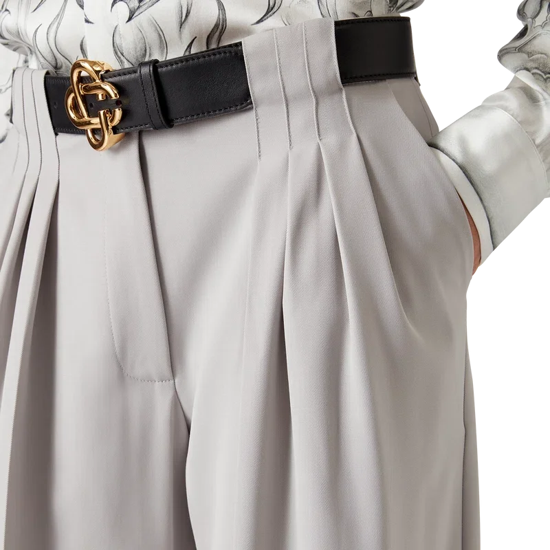 Die maßgeschneiderte Hose aus Wolle mit dreifacher Falte ist ein Modell mit geradem Bein aus Schurwollstoff. Sie verfügt über einen Reißverschluss, drei Falten vorne, schräge Vordertaschen, ein Futter aus Baumwollmischung sowie Gesäßtaschen mit Paspelierung, flachen Knöpfen mit CC-Logo und Gürtelschlaufen.