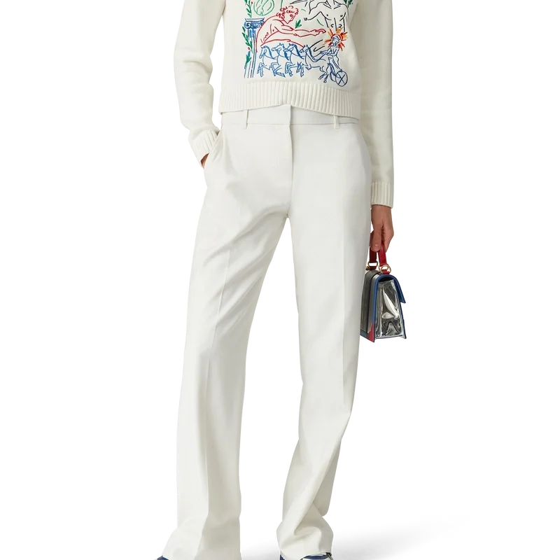 Die maßgeschneiderte Wollhose hat einen schmalen Schnitt, ist aus Schurwollstoff gefertigt und verfügt über ein Futter aus einer Baumwollmischung. Abgerundet wird sie durch Gürtelschlaufen, einen Reißverschluss, schräge Seitentaschen und Paspeltaschen hinten.