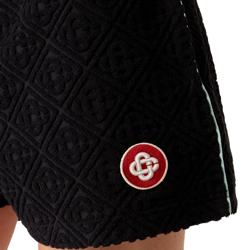 Die Monogram-Jacquard-Frottee-Shorts sind ein klassisches Sportbekleidungsdesign aus Monogram-Frottee. Mit elastischem Bund, Kordelzug, CC-Logo-Patch, Eingrifftaschen, einer aufgesetzten Gesäßtasche und Paspeldetails an den Seiten.