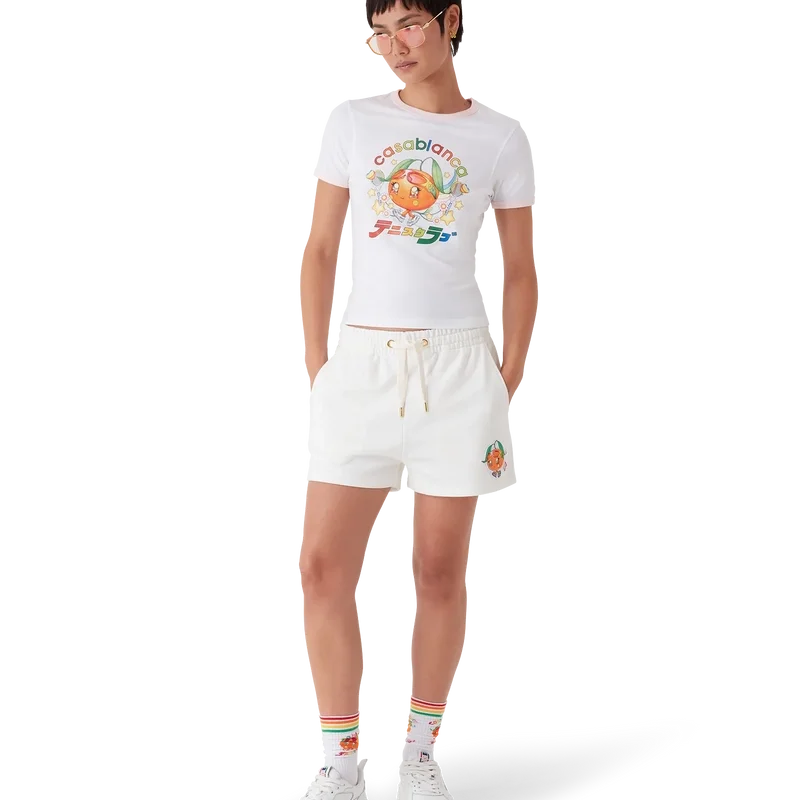 Die Tennis-Maskottchen-Sweatshorts sind ein besticktes Design, gefertigt aus einem gesteppten Stoff mit Gittermuster, der mit saisonalen Motiven des Kawaii-Tennisballs verziert ist – diese Figur ist ein zentraler Bestandteil unseres Universums. Sie vereint Elemente wie das Lorbeerblatt, den Atlantis-Sneaker, den Schläger und die Kawaii-Augen. Wir haben uns dafür entschieden, diese Figur als zentrales Motiv für alle Herrenmodelle der Kollektion zu verwenden. Abgerundet durch einen elastischen Bund, einen Kordelzug, Eingrifftaschen und eine aufgesetzte Gesäßtasche.