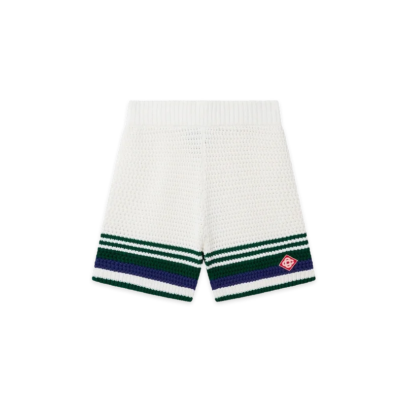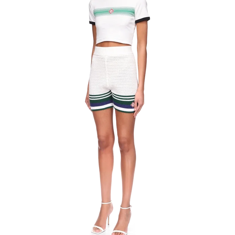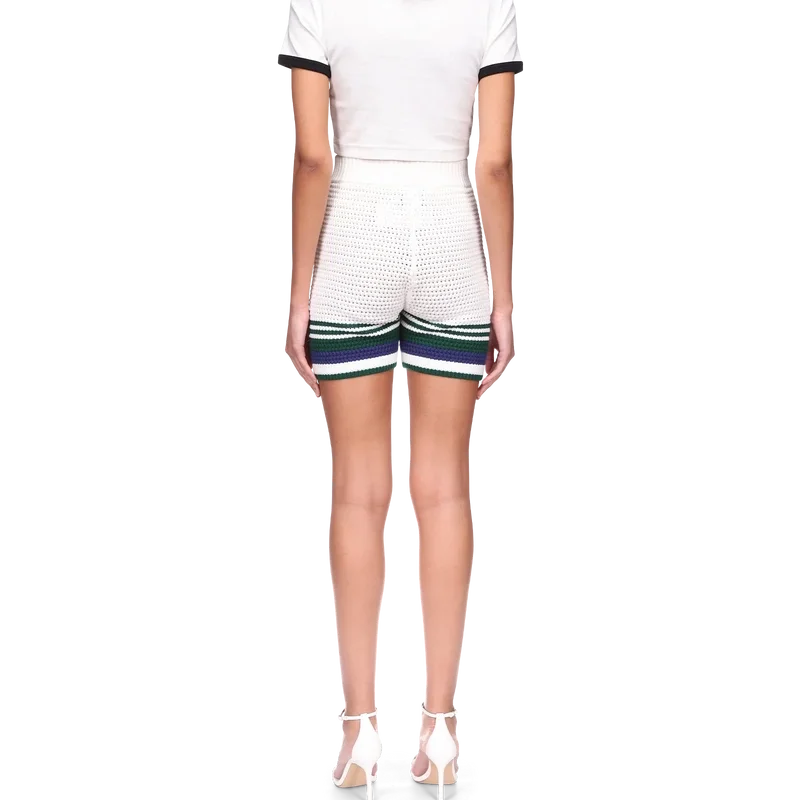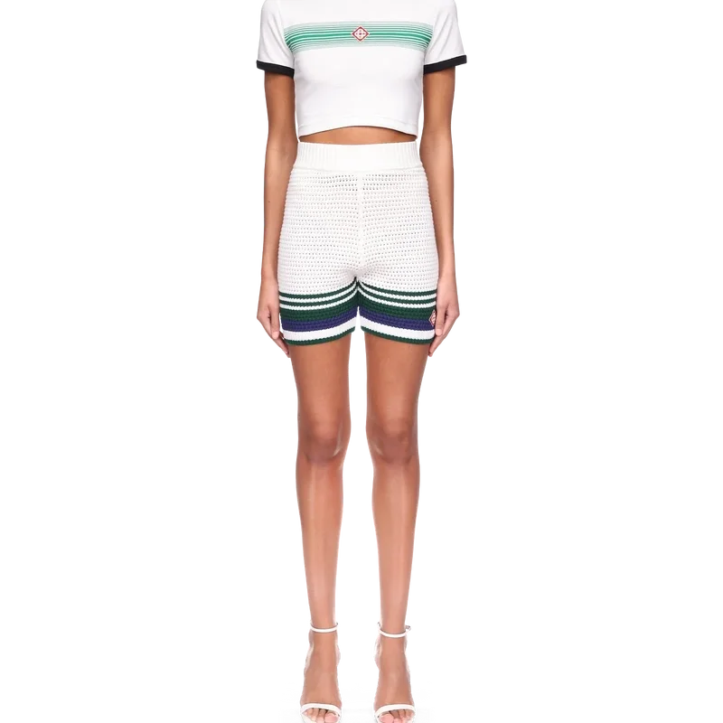 Die Crochet-Tennisshorts für Damen sind ein weich strukturiertes Design aus gestricktem Baumwollstoff mit dem charakteristischen ineinander verschlungenen Cc-Diamant-Logo des Hauses. Mit kontrastierendem Streifendetail am Saum und elastischem Bund veredelt.