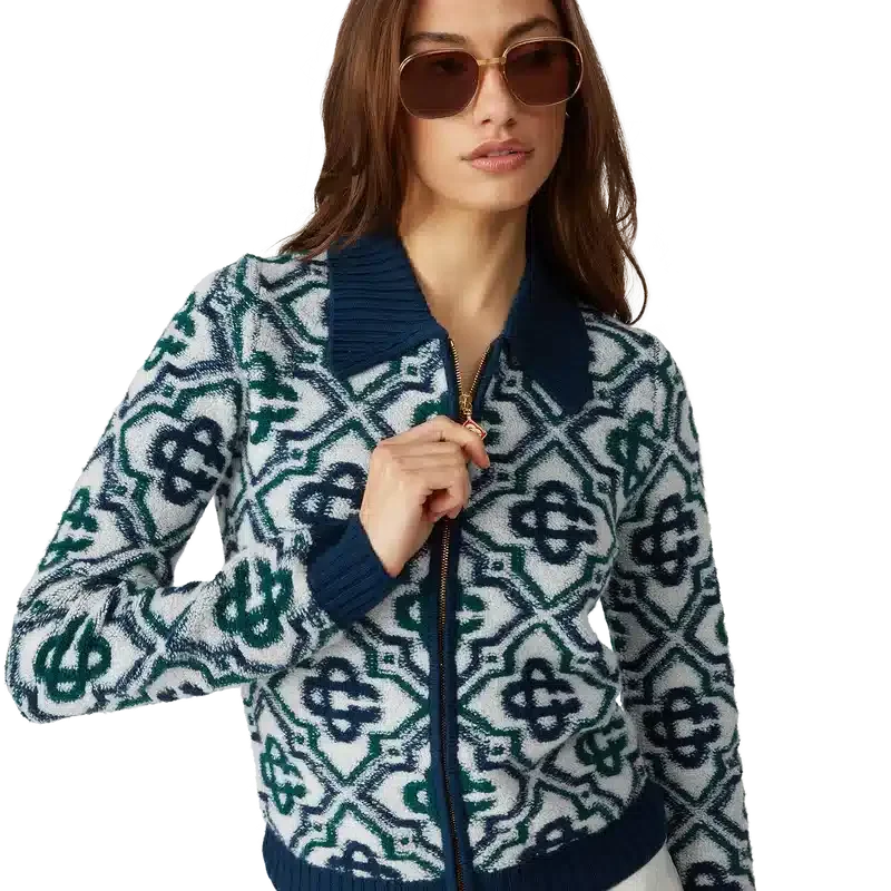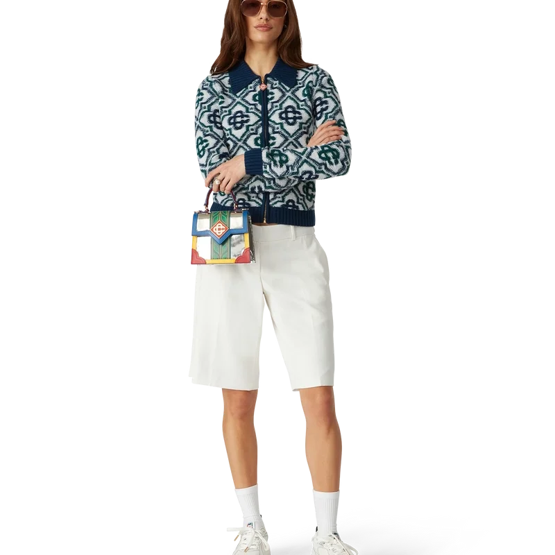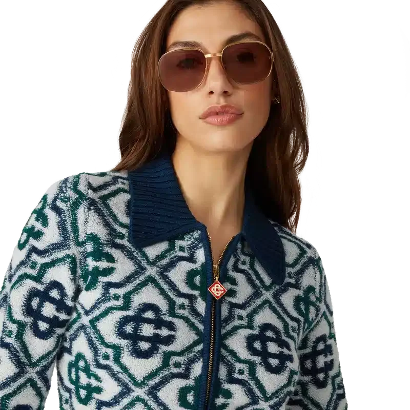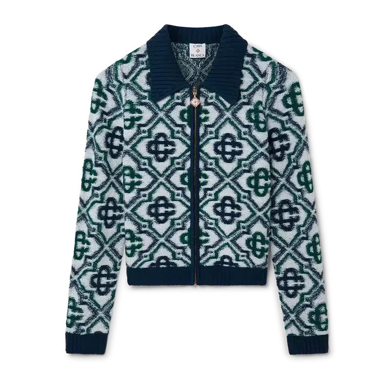 Der Monogram Knit Zip Jumper ist ein klassisches Design mit dem charakteristischen Monogramm des Hauses, gefertigt aus einem Wollmischstrick. Mit Reißverschluss vorne, kontrastierendem Rippkragen, Rippbündchen an Ärmeln und Saum sowie Seitentaschen.