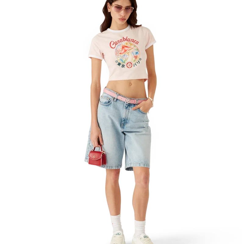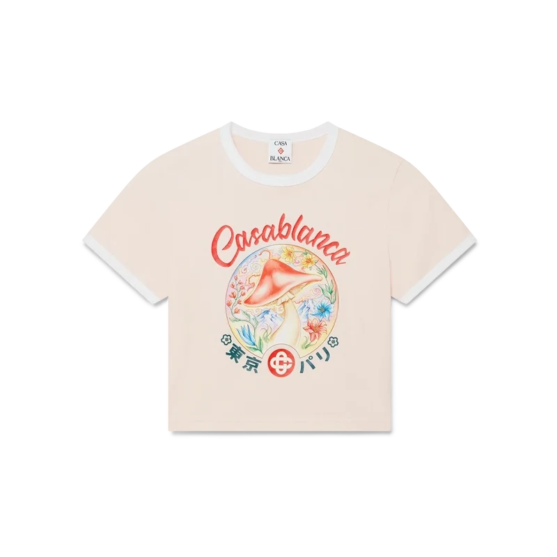 Das Mushroom Emblem Cropped T-Shirt ist ein kurzärmeliges Modell mit einem der charakteristischen Designelemente des Hauses – dem Pilz – und besteht aus Pima-Baumwollstoff. Abgerundet durch einen klassischen Rundhalsausschnitt. Entworfen, um oberhalb des Bauchnabels zu sitzen. Rosa