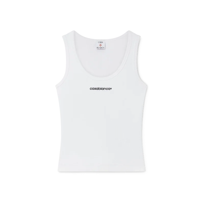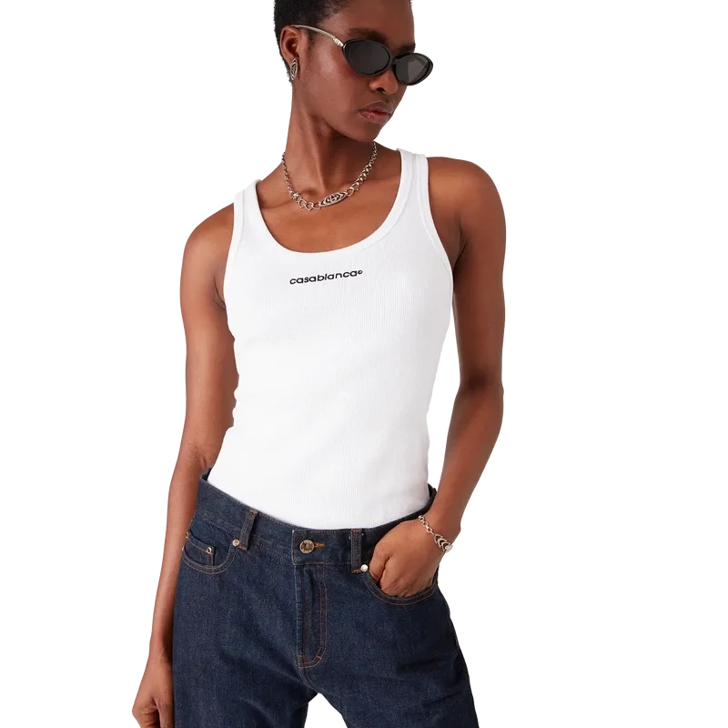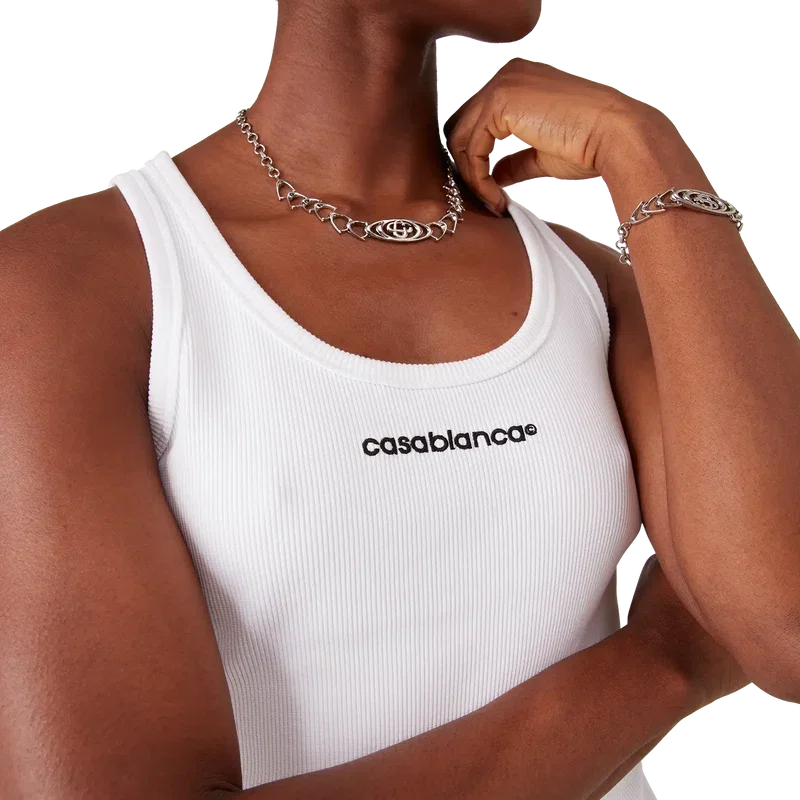 Das gerippte Tanktop ist ein ärmelloses Modell mit strukturierter Rippenstruktur, das zurückhaltende Sport- und Freizeit-Elemente widerspiegelt. Abgerundet wird es durch das Casablanca-Logo, einen U-Ausschnitt und gerippte Details an Halsausschnitt und Armausschnitten.