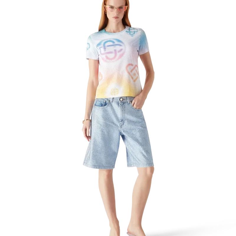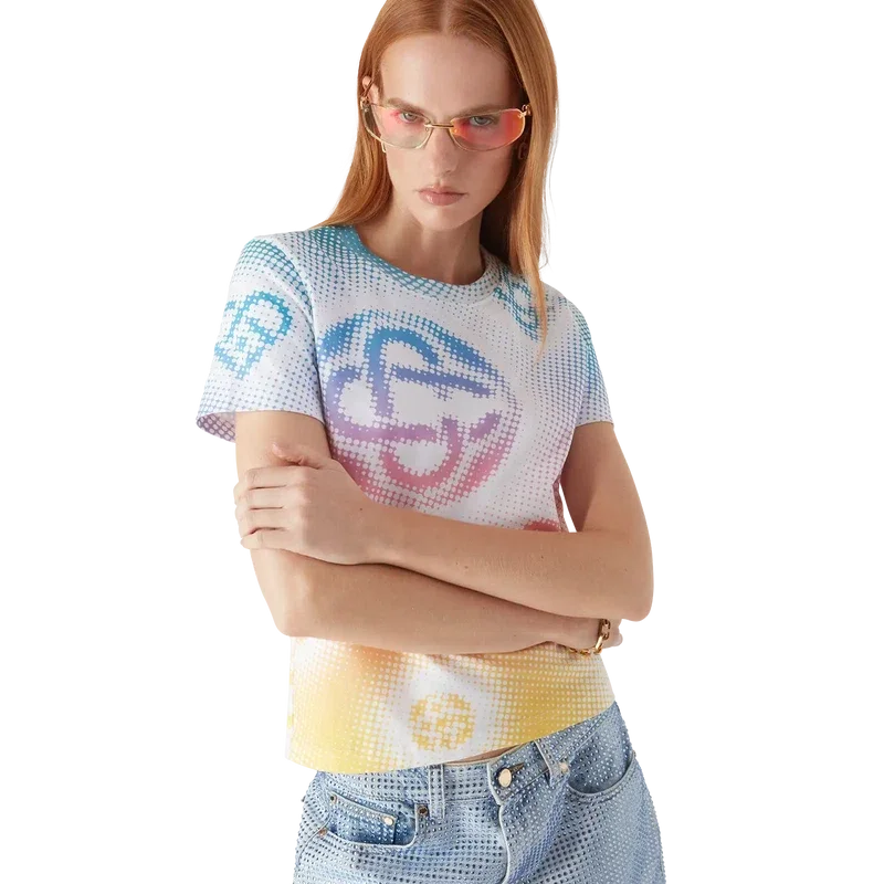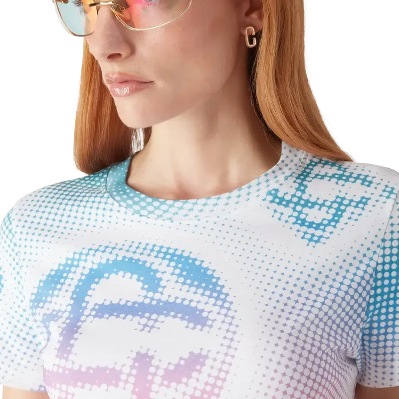 Das eng anliegende T-Shirt mit Halftone-Logo ist ein durchgehend mehrfarbig bedrucktes Design mit dem Logo des Hauses in einer raffinierten Grafik. Abgerundet durch einen klassischen gerippten Rundhalsausschnitt.