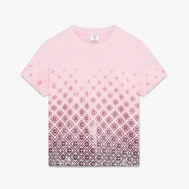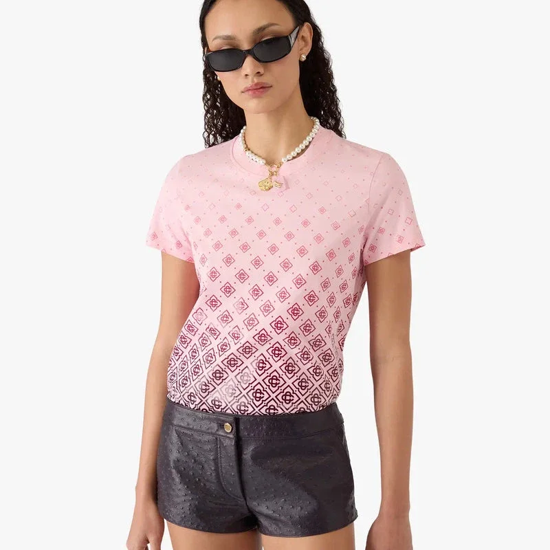 Das rosa Monogramm-Short-T-Shirt mit kurzen Ärmeln und Farbverlauf besticht durch ein raffiniertes Design, das den saisonalen Farbverlauf aufgreift und die satten Farben der Aubergine mit dem charakteristischen Monogramm des Hauses kombiniert. Abgerundet wird es durch einen klassischen Rundhalsausschnitt und eine lockere Silhouette.