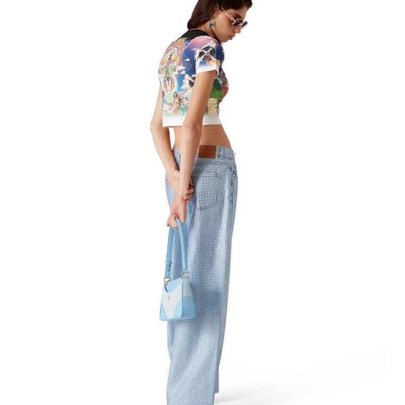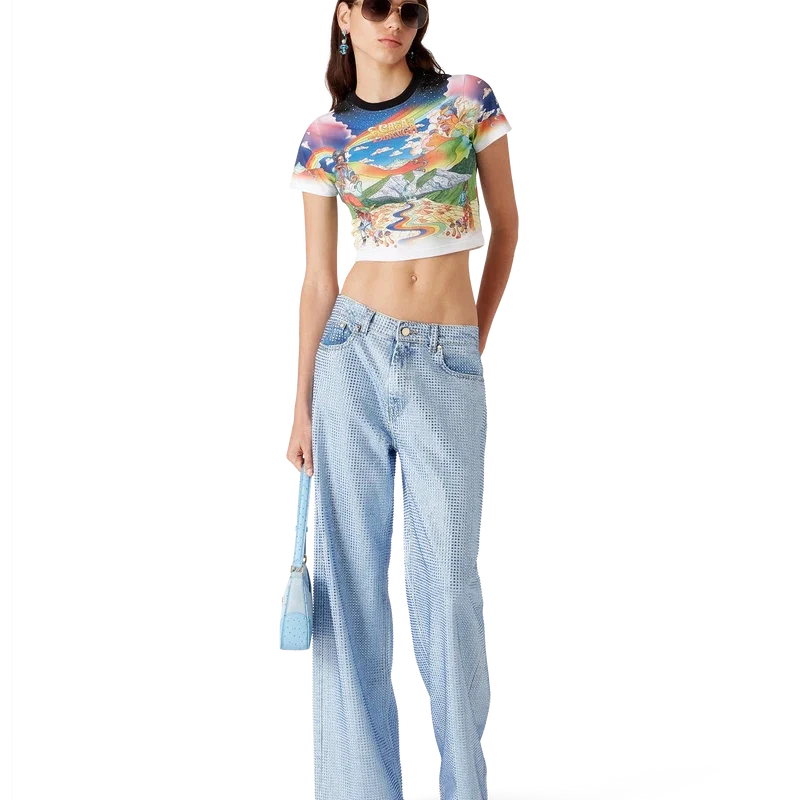 Das La Musique Cropped T-Shirt ist ein kurzärmeliges Modell aus bedrucktem Baumwollstoff mit dem saisonalen Artwork, das eine Ode an Bootsy Collins und ikonische Funk-Platten der 70er Jahre darstellt. Abgerundet durch einen kontrastierenden Rundhalsausschnitt mit Rippstrick. Entworfen, um oberhalb des Bauchnabels zu sitzen.