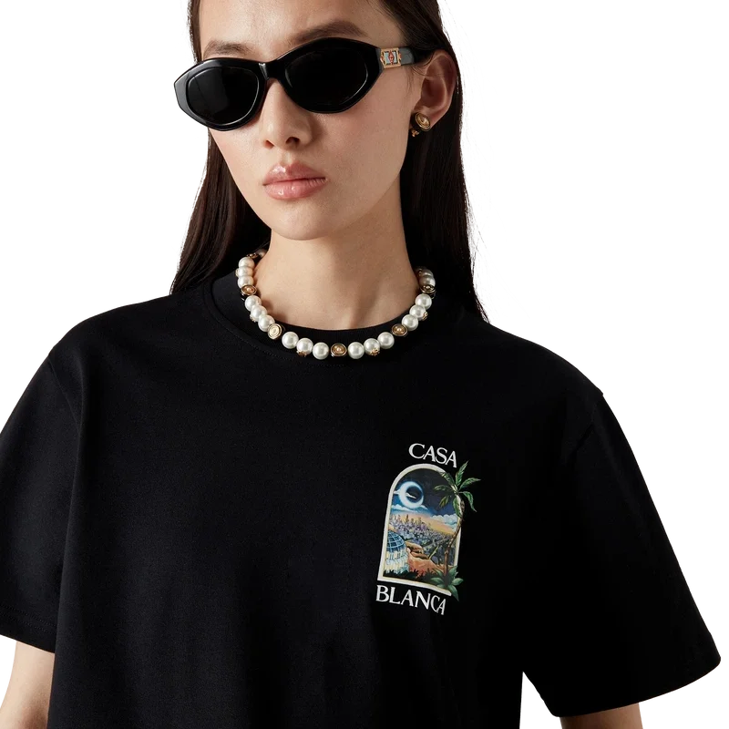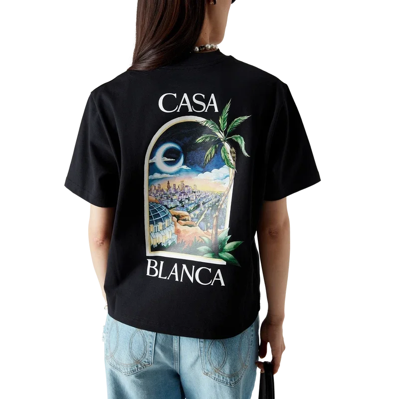 Das La Nights T-Shirt ist ein bedrucktes Kurzarm-Modell aus Bio-Baumwolle mit einem charakteristischen Motiv, das einen Blick auf eine nächtliche Landschaft in La bietet. Abgerundet durch einen klassischen Rundhalsausschnitt.