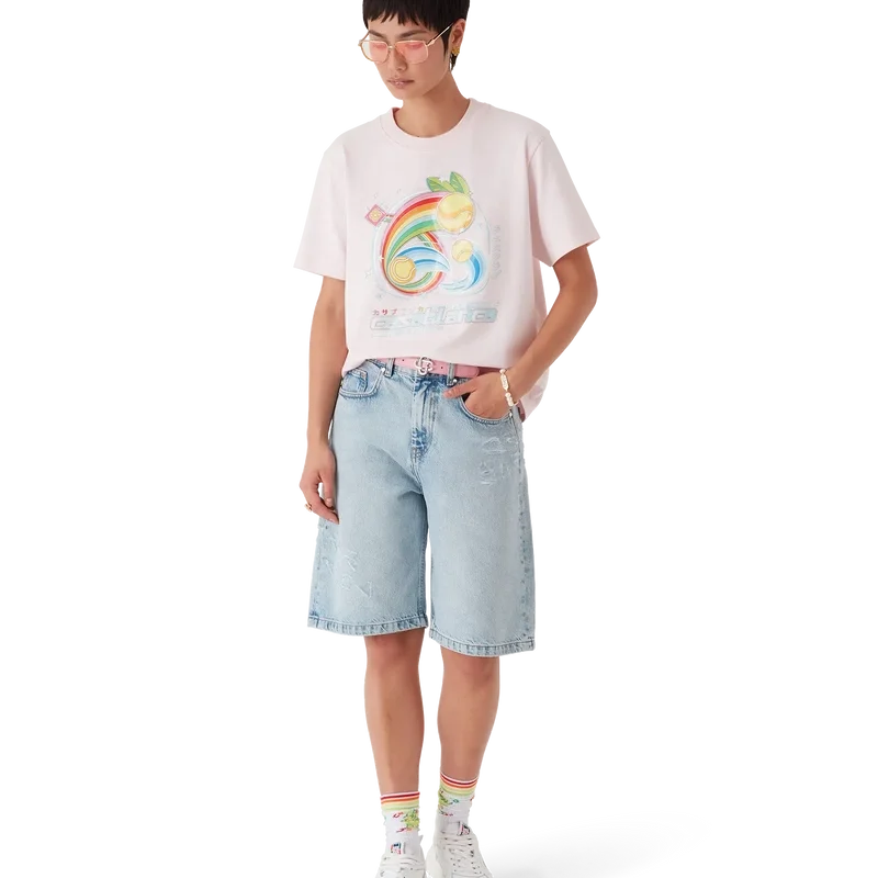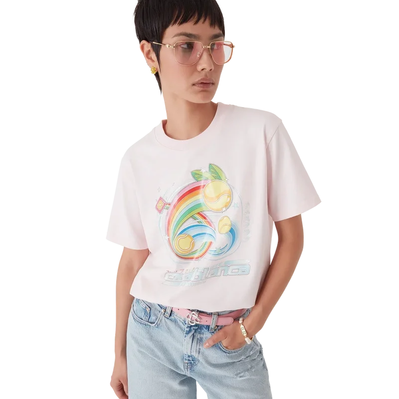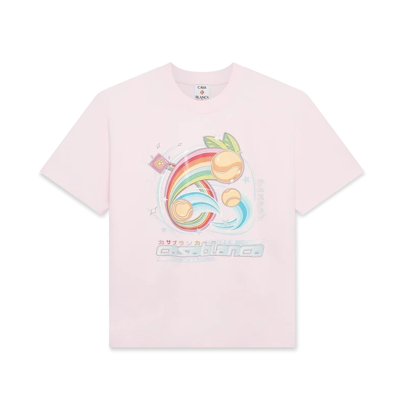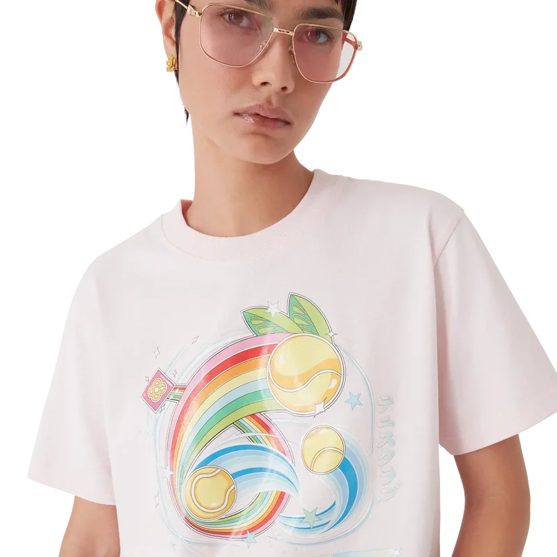 Das Manga Tennis Ball T-Shirt ist ein kurzärmeliges Modell aus Bio-Baumwolle mit saisonalen Motiven, das weiterhin die Welt von Kawaii und Manga erkundet und mit der Ikonografie von Casablanca spielt, indem es Tennisbälle als Orangen darstellt – für einen lustigen Twist. Abgerundet durch einen klassischen Rundhalsausschnitt.