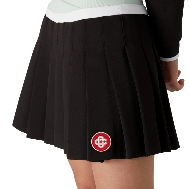 Der plissierte Minirock aus Scuba-Stoff ist ein kurzer Short mit A-Linien-Silhouette, der mit dem charakteristischen Rautenlogo des Hauses verziert ist und aus Viskose gefertigt ist. Abgerundet wird er durch einen überlappenden, grün-weißen Strickbund und einen plissierten Einsatz.
