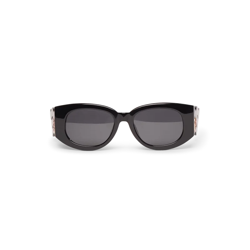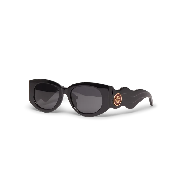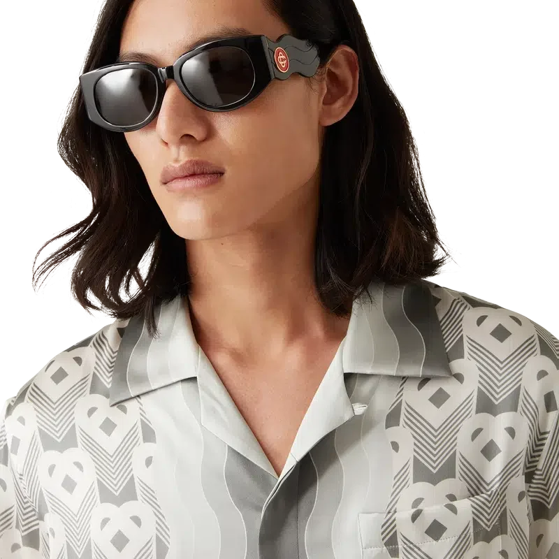 Die markante schwarze Acetatstruktur der Memphis-Sonnenbrille prägt diese rechteckige Sonnenbrille. Hier ist das charakteristische Casablanca-Diamond Monogram-Logo an den Bügeln angebracht. Die grauen Verlaufsgläser bieten 100 % UV-Schutz und das Modell wird komplett mit einer Geschenkbox, einem Reinigungstuch und einem Garantieschein geliefert.