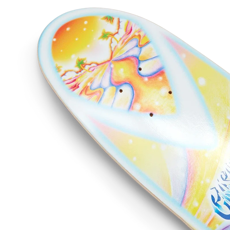 Das Casablanca Ss25 Cruiser Skateboard Deck ist ein Sammlerstück in limitierter Auflage, gefertigt aus hochwertigem kanadischem Hardrock-Ahorn und wasserbasiertem Leim, mit dem psychedelischen Nirvana-Artwork des Hauses auf der Unterseite. Abgerundet durch das Casablanca-Branding; dieses Produkt wurde speziell für unsere Printemps-ÉTa 2025-Modenschau angefertigt. Jedes 8,125″-Deck wird in einer zufällig ausgewählten Top-Stain-Farbe und einer zu 100 % recycelbaren Verpackung geliefert. Die Top-Stain-Farben werden beim Kauf zufällig aus einer kuratierten Palette aus Rot, Braun, Schwarz, Blau und Gelb ausgewählt.