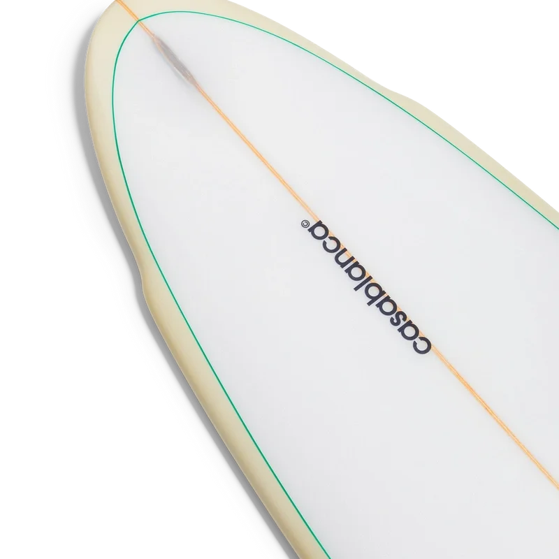 Das Casablanca-Surfboard ist aus hochwertigem Fiberglas, Polyurethanschaum und Polyesterharz gefertigt und verfügt über den charakteristischen Degrade-Monogramm-Aufdruck des Hauses auf der Unterseite sowie das Casablanca-Logo mit dem markanten Diamond Monogram auf dem Deck. Abgerundet wird es durch einen Holzstringer, ein weißes Deck mit mintgrünem Rand und hellgelben Rails. Das Casablanca-Surfboard misst 178,2 cm (von der Nase bis zum Heck) x 53 cm (von Rail zu Rail an der breitesten Stelle). Dieser Artikel wird ohne Finnen und Leash geliefert.