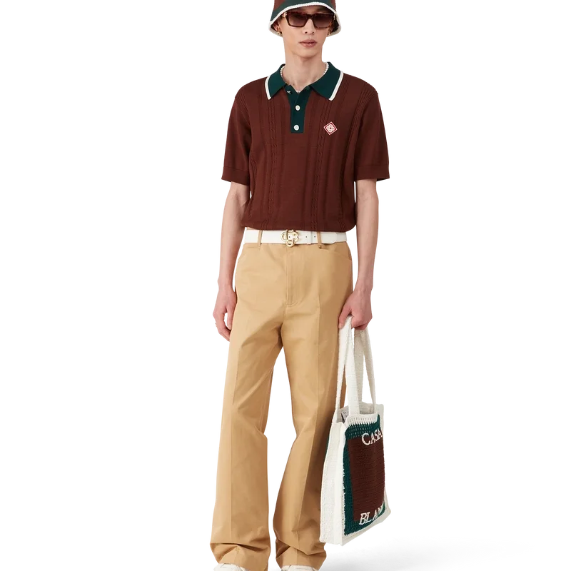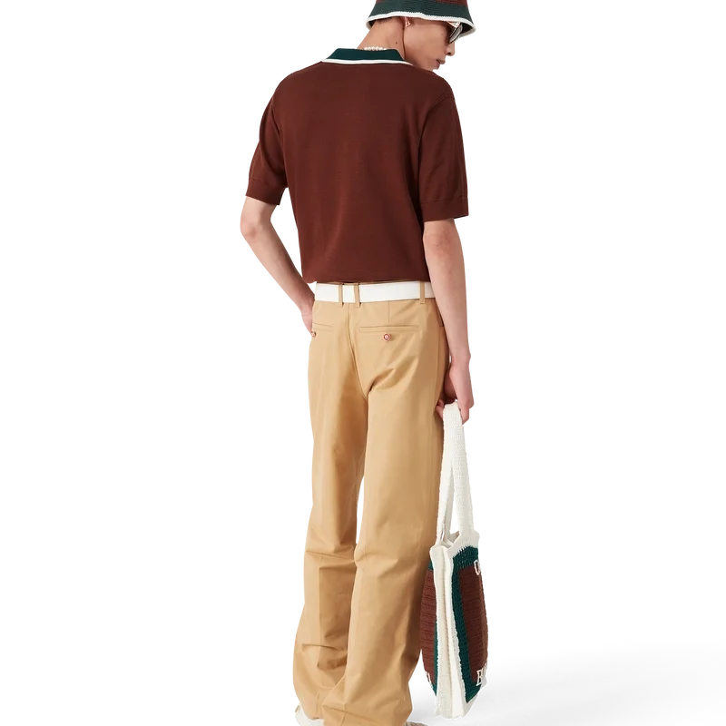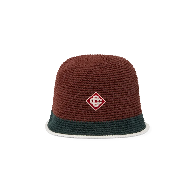 Die gestreifte Häkelmütze ist im Bucket-Stil gehalten und aus einem weichen, strukturierten, offen gewebten Baumwoll-Häkelstoff gefertigt – das ultimative Sommer-Must-have. Abgerundet wird sie durch eine grüne Krempe mit weißem Rand sowie das charakteristische Rautenlogo des Hauses in der Mitte.